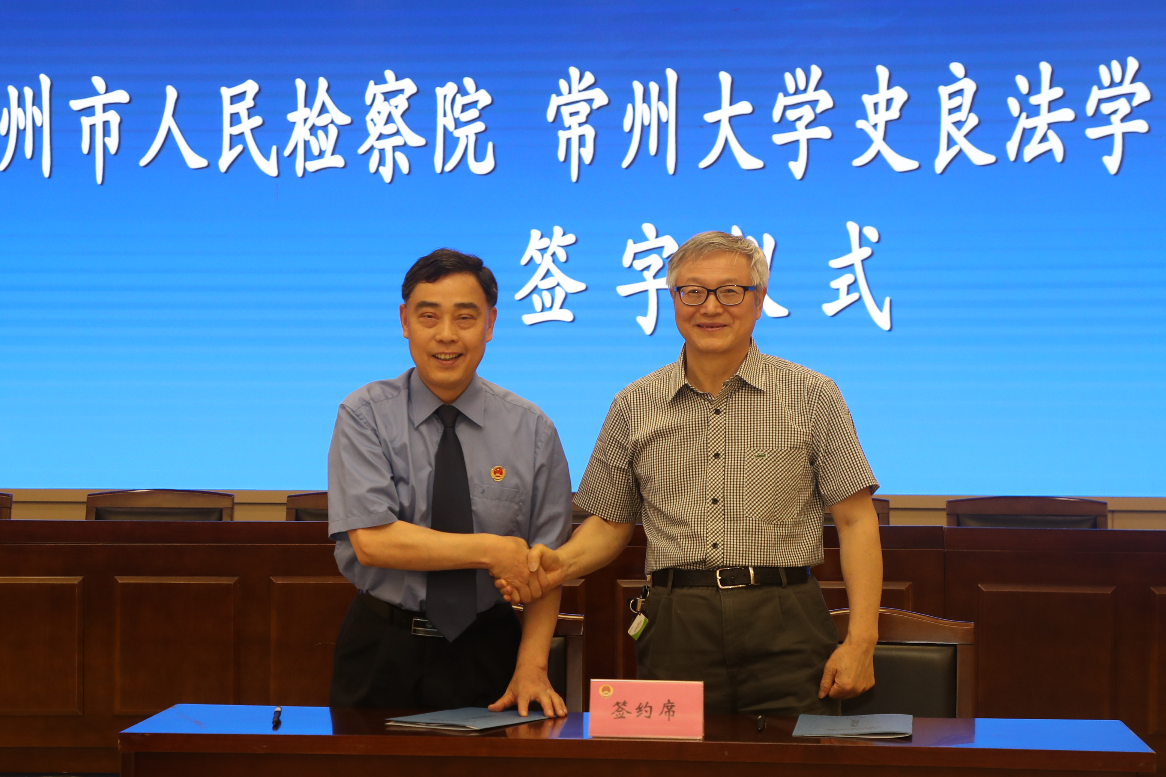 常州大学和常州市检察院于6月18日下午在常州市检察院举行“检察案例研究中心”启动仪式,常州大学党委书记陈群、常州市检察院党组书记、检察长葛志军、常州市检察党组成员、副检察长王建国、法律政策研究室主任周剑、常州大学党办校办主任周刚、全国政协委员、史良法学院院长曹义孙教授、学院党委书记秦义、刑法所所长赵赤等出席启动仪式。