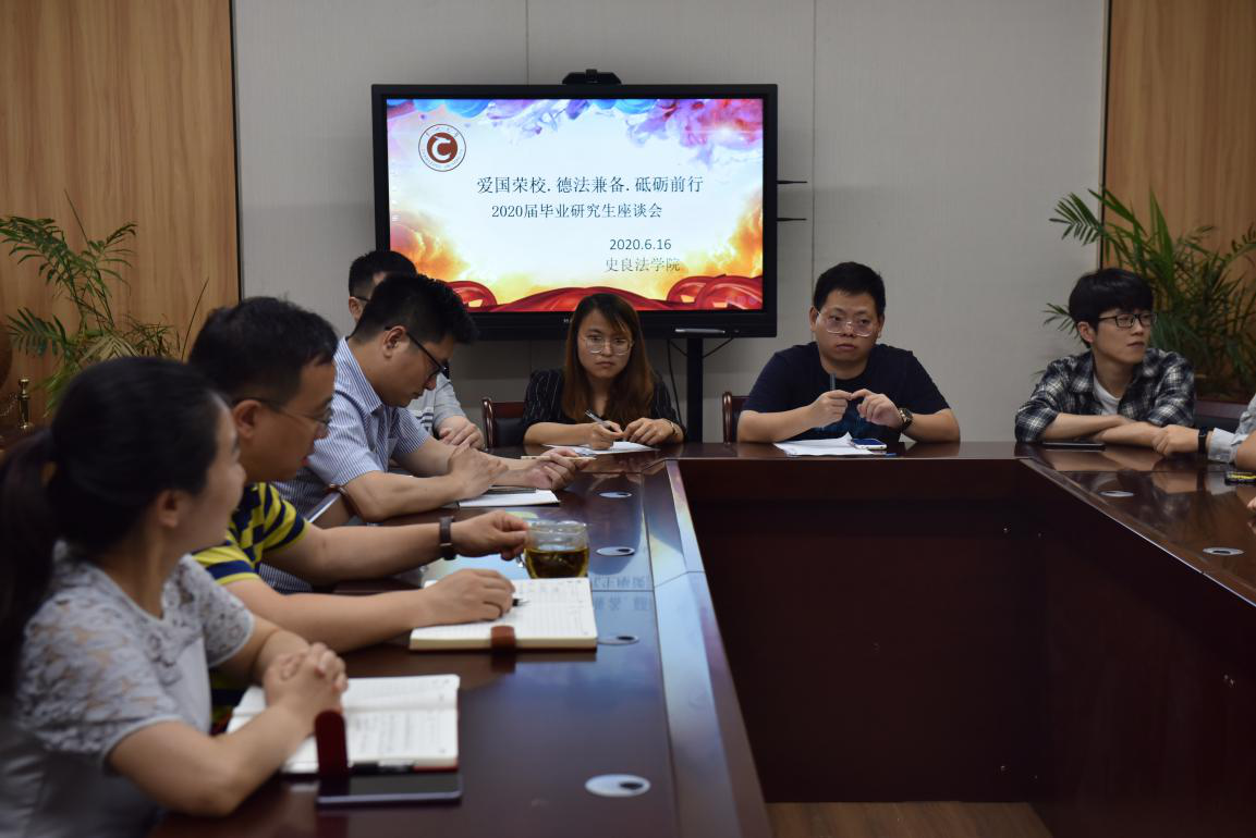 6月16日上午,史良法学院于文彰楼515会议室召开毕业研究生座谈会,学院部分领导和17级全体毕业研究生参加了会议,会议由学院党委副书记陈婷主持。