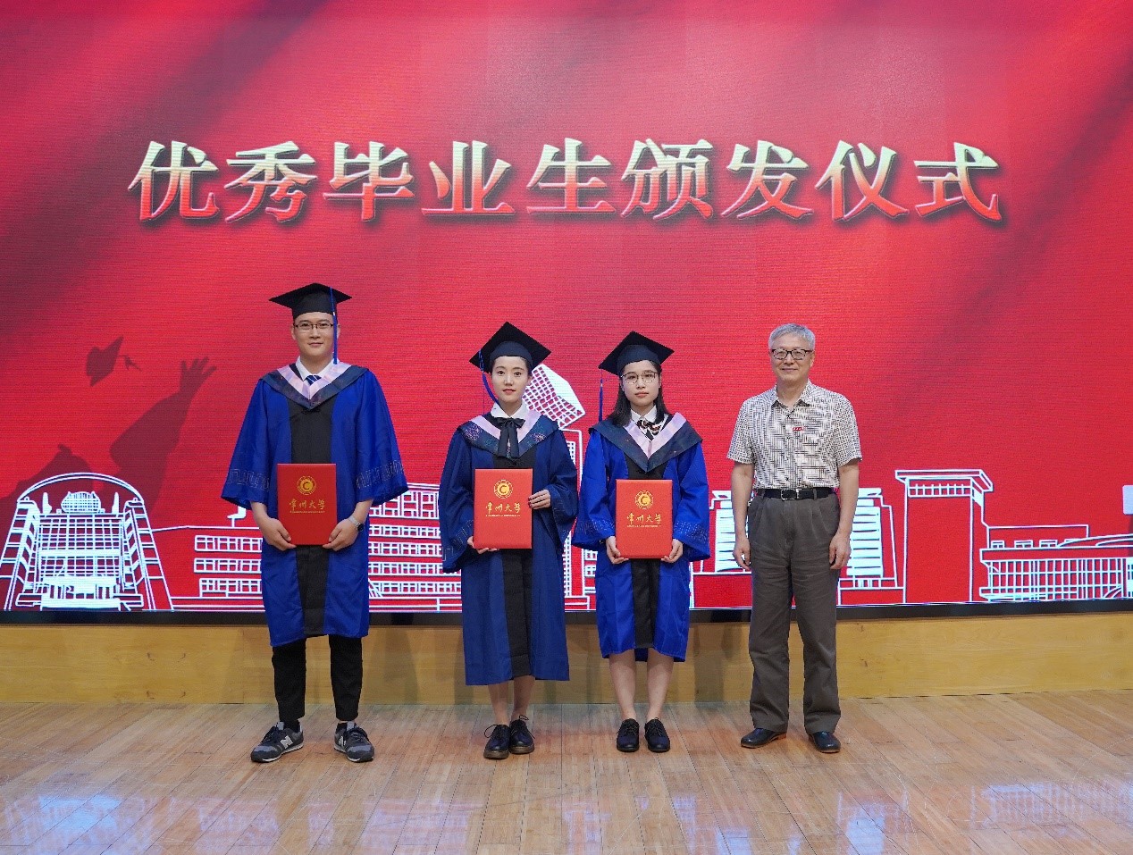 为了鼓励先进、树立典型,根据《常州大学“优秀毕业生”“优秀毕业生标兵”评比办法》,经本人申请、学校评审,共有10名同学获得常州大学2020届“优秀毕业生”荣誉称号。史良法学院曹义孙院长为优秀毕业生代表颁发荣誉证书,并合影留念。