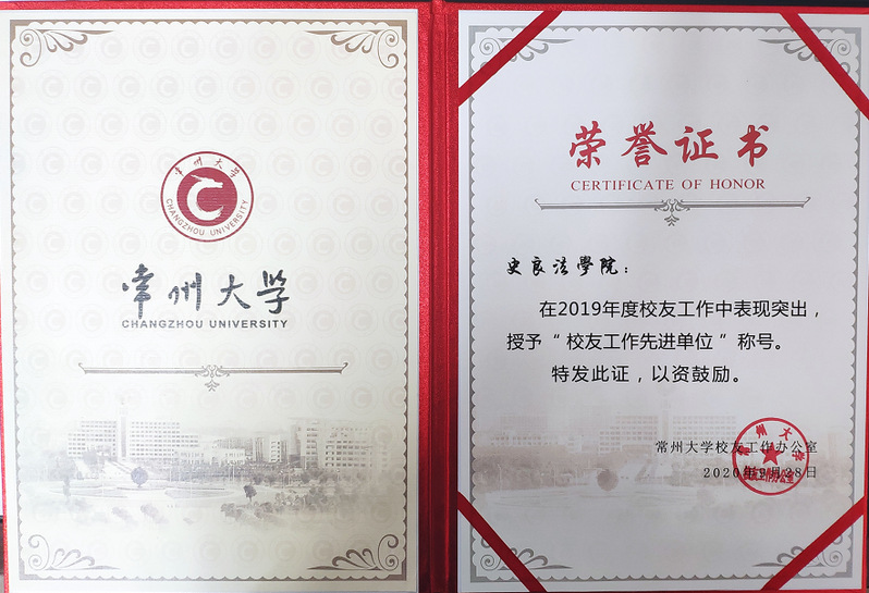 近日,在常州大学2019年学院校友工作考核评选活动中,经学院自评、校友工作办公室审核,我院获得常州大学2019年校友工作考核一等奖,荣获“校友工作先进单位”称号。
