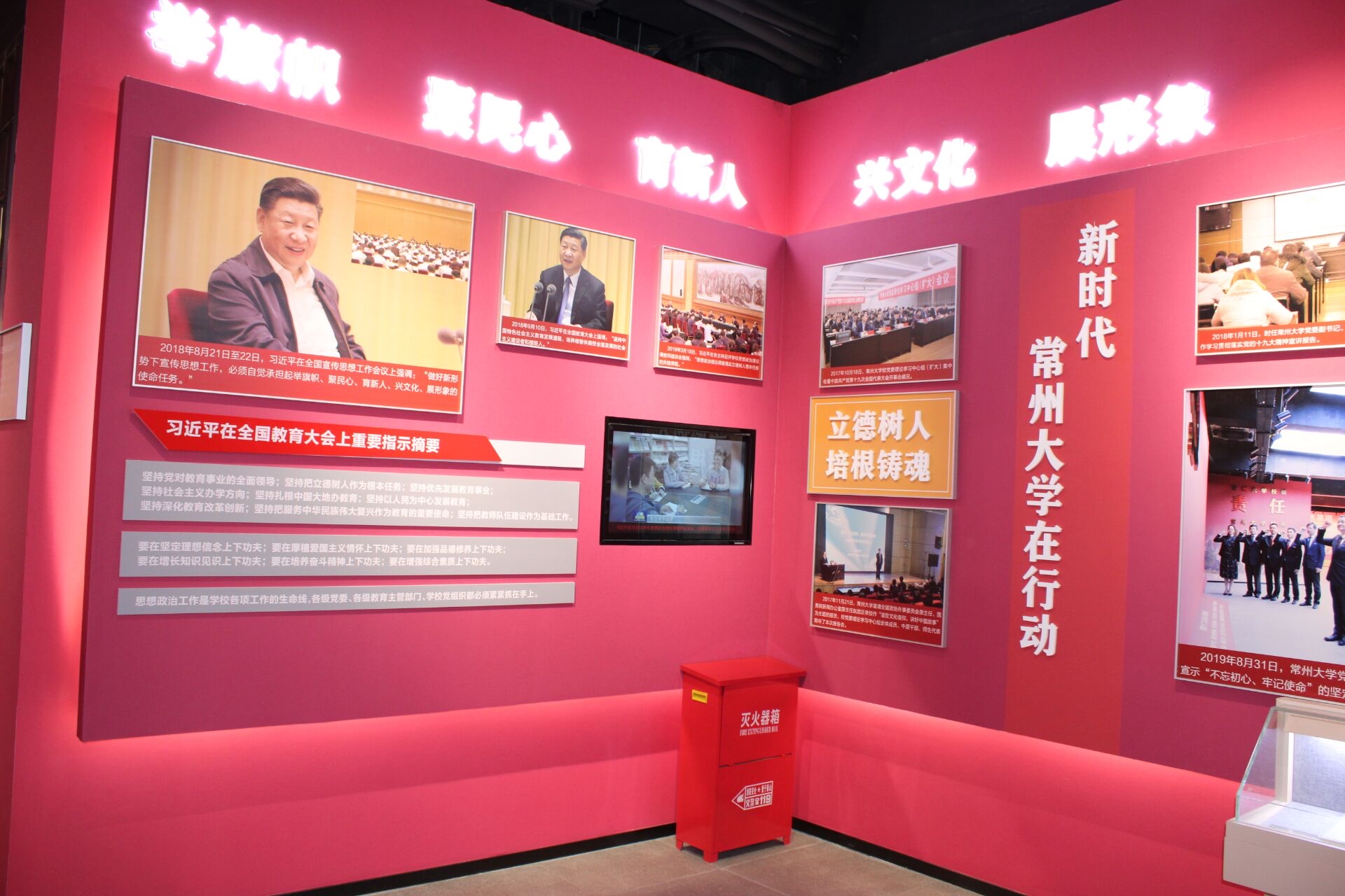 常州红馆以“红色融入·铸魂育人”为陈列主题,涵盖“融入新时代”“融入常州红色文化沃土”“融入常州大学文化传承特色”等三个部分共九个单元内容。在参观过程中,通过“张伯苓爱国三问”“李大钊穿越百年来电”等一系列充满创意的互动交流项目,结合习近平新时代中国特色社会主义思想,同学们加深了对红色文化的认知与体悟。