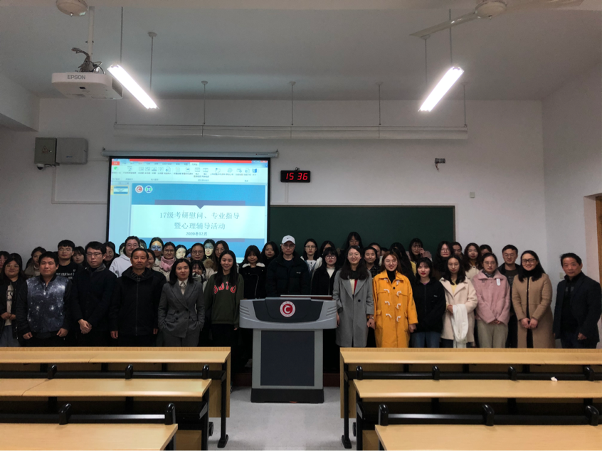 距离考研的日子越来越近,备考气氛愈加浓烈,为鼓励考研同学一鼓作气,继续奋战,12月3日下午,学院组织了考研慰问、专业指导暨心理辅导活动。学院党委副书记陈婷书记、莫良元副院长、赵赤教授、张顺老师、宣頔老师和高可老师前往教学楼慰问辛苦备战的2021届考研学子们。