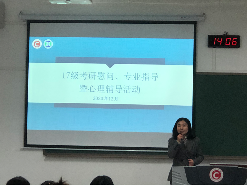 慰问会上,学院党委副书记陈婷书记代表学院向正在准备考研的学子表达了慰问、鼓励和期望之情,鼓励大家在最后的二十几天内积极准备,争取最后胜利。接着,各科老师从各学科的出题角度出发,从多个方面为大家总结了考研科目的复习重点、技巧和注意事项。希望同学们在备战考研的过程中能够充分利用有效资源,积极调整好心态,合理规划剩余复习时间,踏踏实实、稳扎稳打、坚定信念、将备战考研坚持到底。