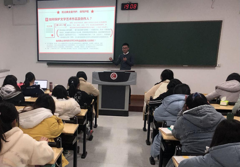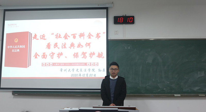 为全面贯彻落实习近平法治思想,加强法制宣传教育工作,推动我院特色法治微课系列宣讲活动的开展,值《中华人民共和国民法典》正式施行之际,我院19级硕士研究生孙森同学受音乐与影视学院、周有光文学院的邀请,于12月20日和12月21日分别为两院2020级全体新生开展法制宣传教育活动。