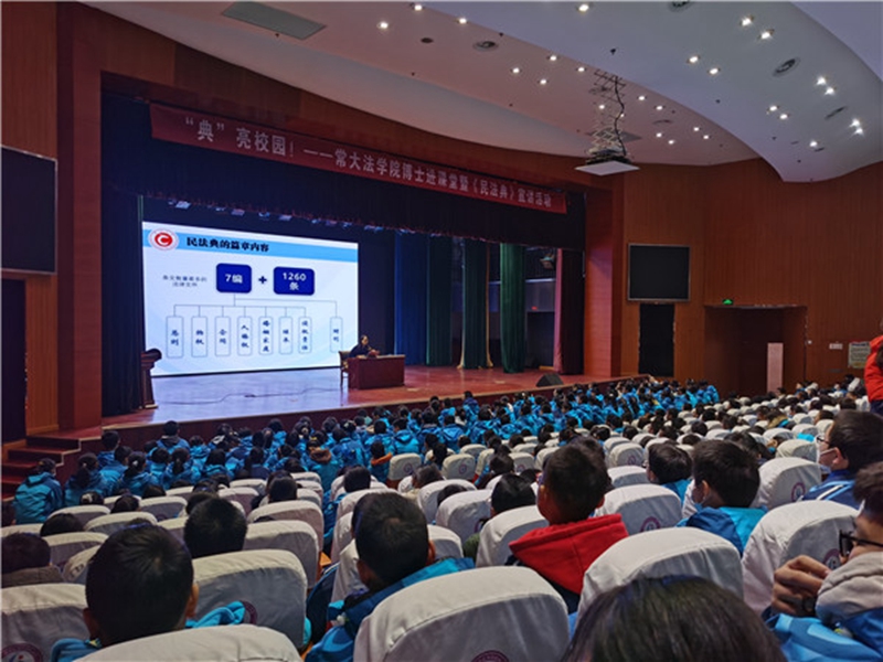 为认真贯彻落实习近平总书记关于“把民法典纳入国民教育体系,加强对青少年民法典教育”重要讲话精神,在全校师生中大力弘扬法治精神,12月18日,史良法学院联合洛阳初中开展“典”亮校园——《中华人民共和国民法典》宣讲活动”,我院高可博士为洛阳初中师生授课。
