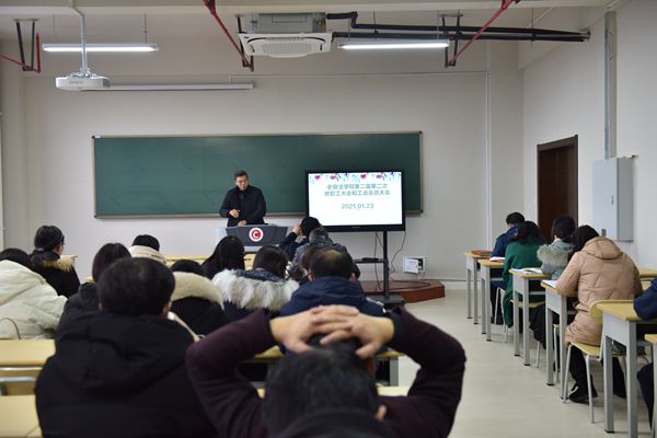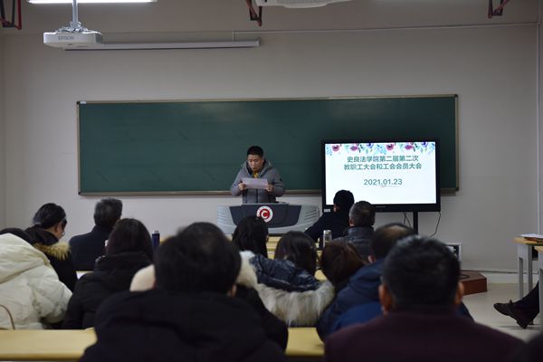 2021年1月23日,史良法学院在西太湖校区召开第二届第二次教职工大会暨工会会员大会。院领导班子成员和全体工会会员参加会议,会议由党委副书记陈婷主持。