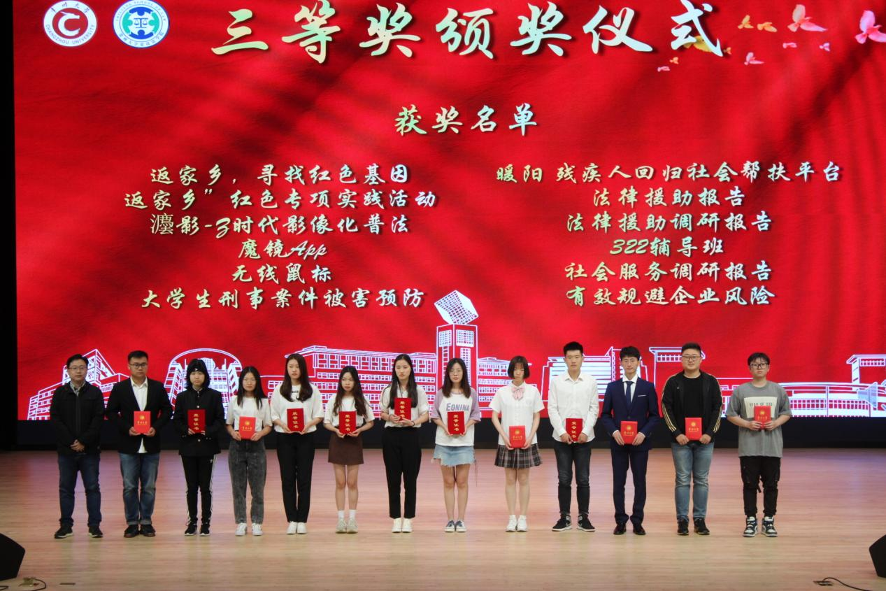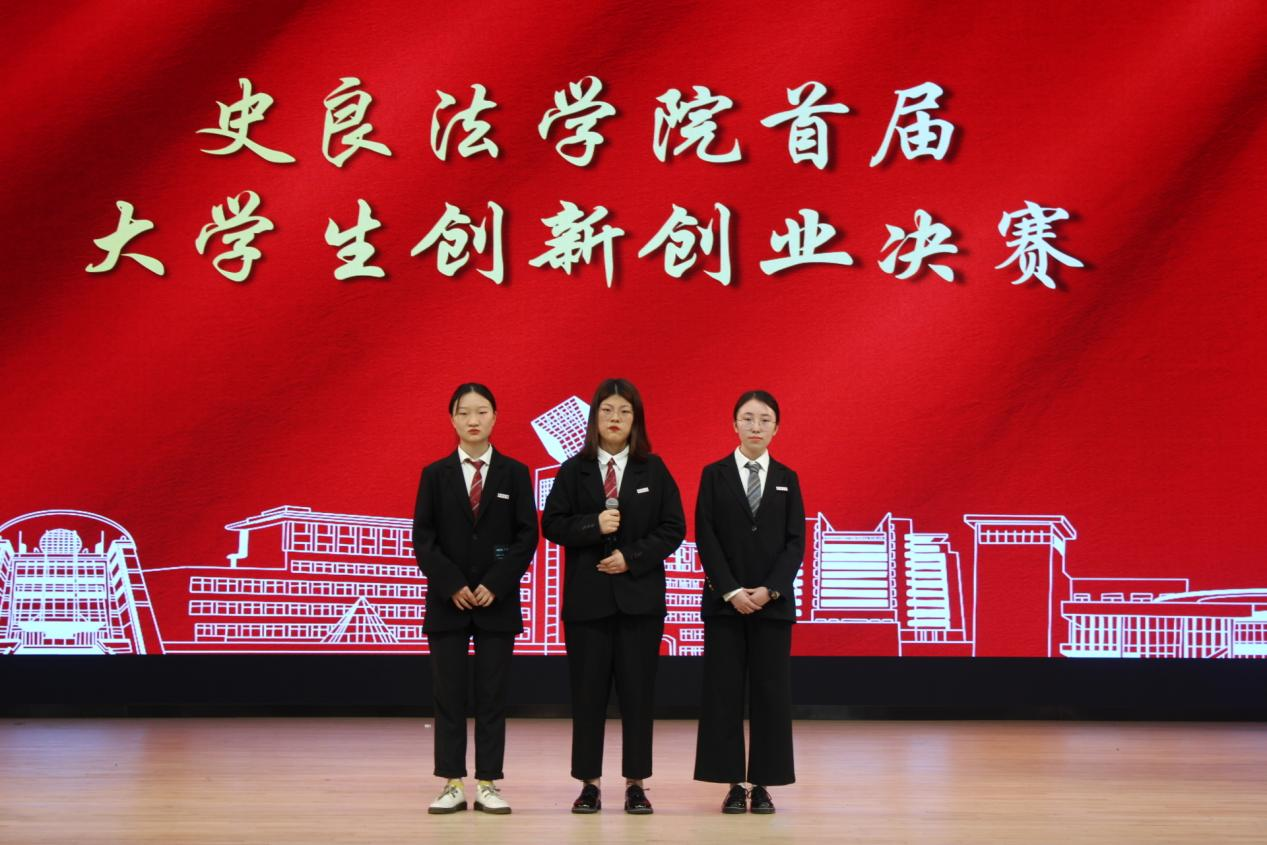 比赛开始,史良法学院党委副书记陈婷对史鋆、彭伟、吴春晖三位评委老师担任我院创新创业导师一职表示衷心的感谢,并为三位评委老师颁发创新创业导师聘书。随后,各项目负责人进行项目展示与答辩,评委老师根据PPP展示内容和负责人答辩内容对各个项目进行评分,并就项目存在的问题提出建议。接着,陈醉同学分享了自己的创新创业赛事经验并建议同学们走出校园。比赛最后,主持人现场公布获奖团队并为获奖项目团队进行颁奖,评委与各团队合影留念。本次比赛共有十八组团队参加,十五组团队进入决赛,其中,十二组团队获得三等奖,两组团队获二等奖,智慧矫正帮扶公益中心团队获得一等奖。