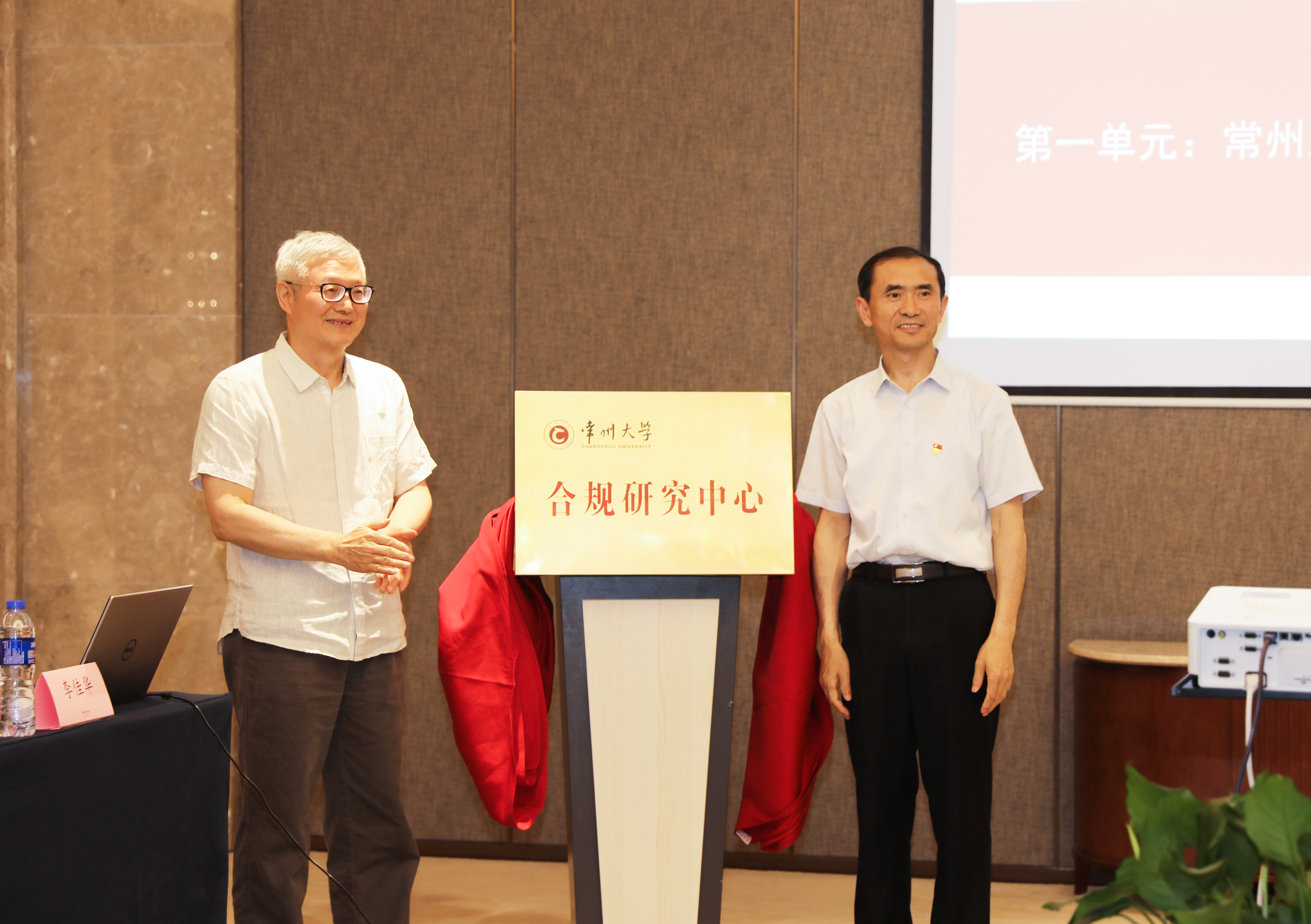 在常州大学“合规研究中心”成立揭牌仪式上,常州大学纪委书记邱正祥、常州大学史良法学院院长曹义孙为常州大学“合规研究中心”进行揭牌。曹义孙院长致欢迎词,他希望“合规研究中心”成立后能够以“习近平法治思想”为指引,凝练高水平的团队,做出高质量的研究成果,努力地在教学、人才培养、社会服务以及法治文化传承、特别是推进中国的法律制度建设做出自己的贡献,努力地在长三角地区乃至全国产生显著影响,成为一个有全国影响的合规研究团队。常州市工商联副主席眭荣辉、常州市贸促会副会长张进、常州大学商学院院长佟金萍教授等也先后致辞,表达了对成立“合规研究中心”的良好祝愿和期待。揭牌仪式由史良法学院党委书记秦义主持。