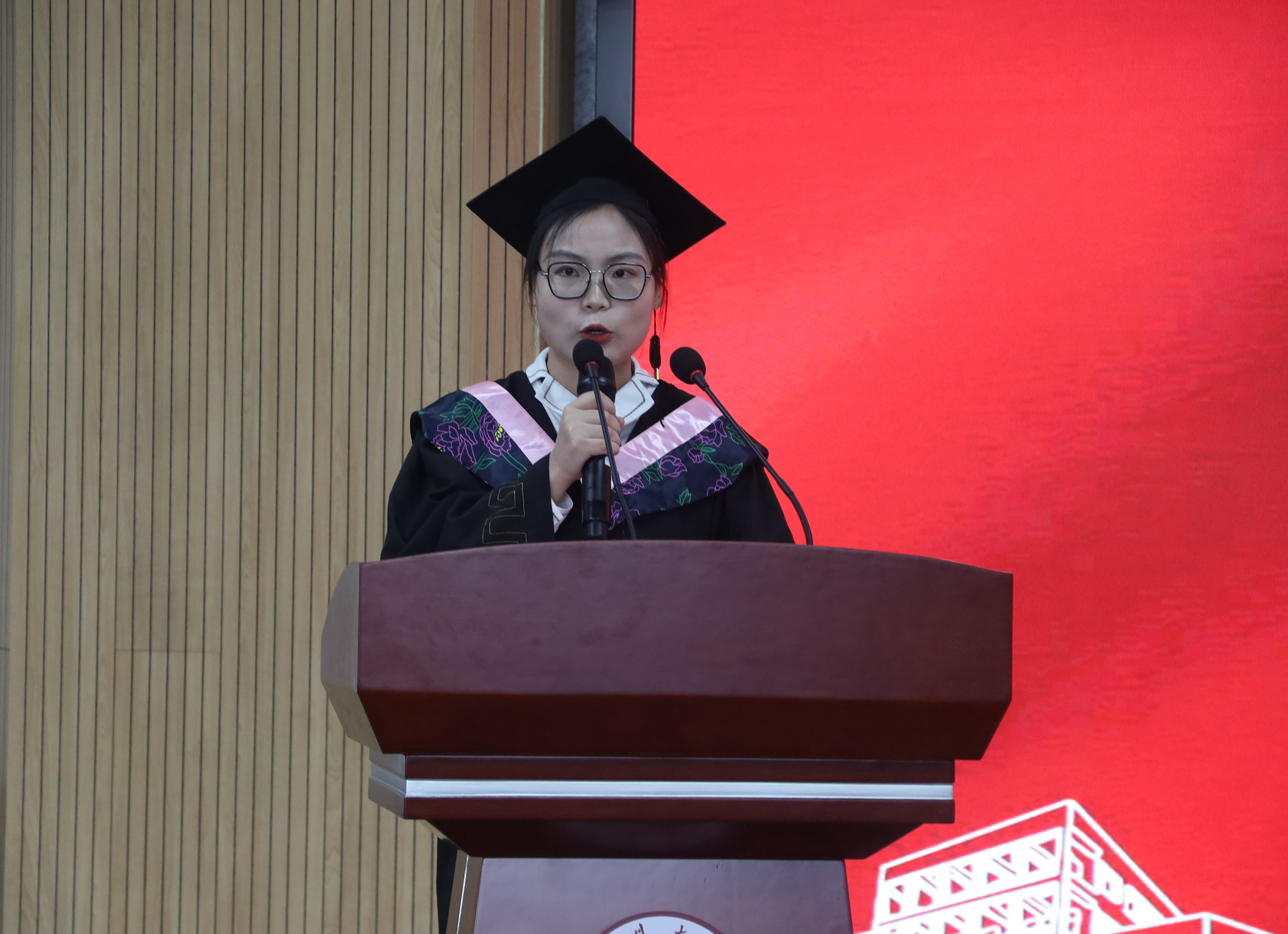 在学生代表发言环节,法学173班杨文希代表全体本科毕业生们感谢母校的栽培与陪伴,并表示路在脚下,明天会更好,祝愿毕业生前程似锦,也祝愿老师桃李满江。研究生代表季盼盼总结三年所得,深切表达了其对学院、老师的感激之情和对同学、朋友的不舍之情。在教师代表发言环节,夏纪森教授代表学院全体教师向毕业生圆满完成学业表示热烈祝贺,并分享了两则故事与毕业生们共勉,希望毕业生们能够始终秉持法治的精神,守正向善,行以致远,做一名无愧于时代的法律人。在学位授予仪式上,史良法学院院长曹义孙为我院2021届毕业生代表逐一拨正流苏,授予学位。