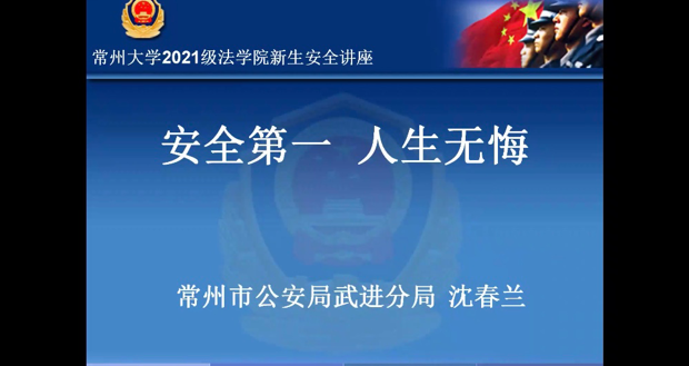9月16下午,史良法学院开展2021级新生安全主题教育。此次活动采取线上会议形式,有幸邀请到常州市公安局武进分局沈春兰警官来为同学们进行讲座。