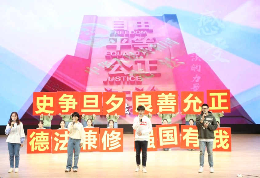 最后,全体同学合唱由法学院学生原创的歌曲《宪法于心》,在“请党放心、强国有我”的高呼中,开学典礼圆满落下帷幕。(通讯员/陈子威 审核/秦义 编辑/庄媛 )