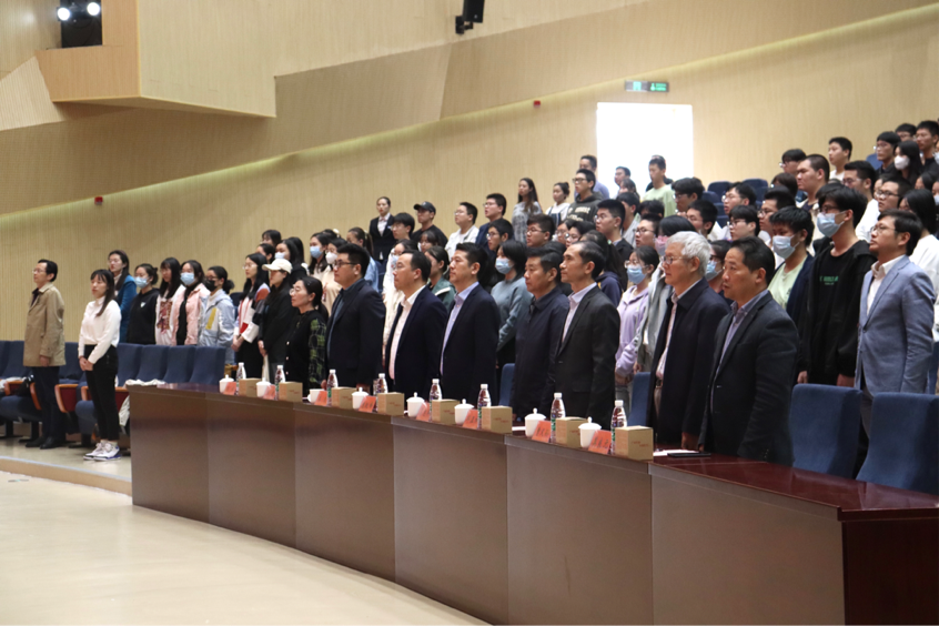曹义孙为2021级的新同学们送上四句充满哲理的教诲:“一是认识你自己;二是关照自己的灵魂;三是养成独立思维,崇尚智慧;四是求知若渴,学习为业。”在场同学们深受鼓舞与启发,以热烈的掌声回报所有领导与老师的谆谆教诲。