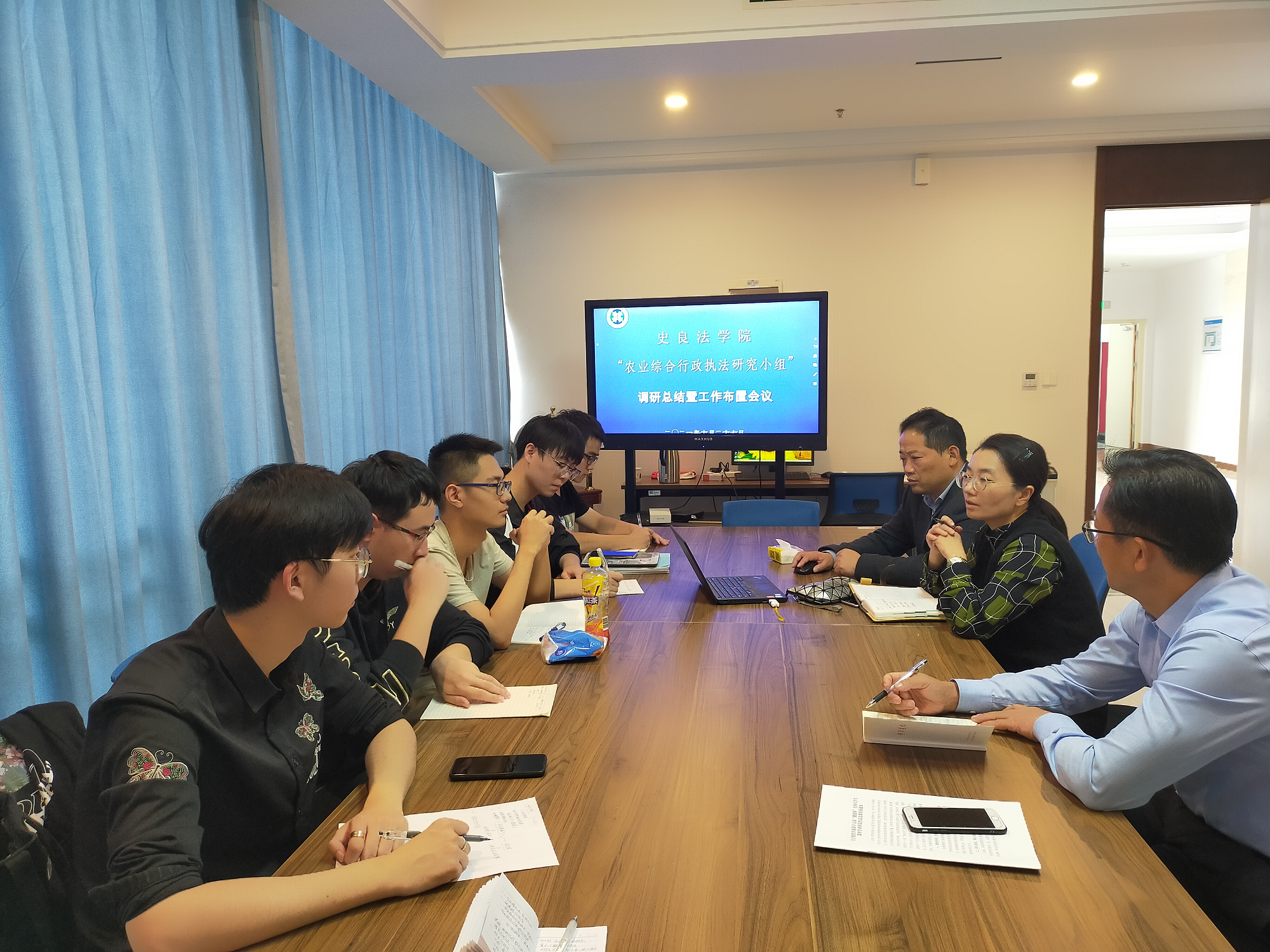 在各个监测点,同学们旁听了当地农业局、农业综合行政执法单位向监测组举行的汇报会议,和监测组一起参观检查执法部门的办公场所、执法装备,翻阅查看执法部门的执法案卷,参加监测组与当地党代表、人大代表、政协委员、农户及农资经营户代表的座谈会,获取了部分当地执法工作的实际资料。通过考察调研,同学们了解了各地农业综合行政执法工作的实际状况,以及行政执法中所依据的法律规范、实际办案流程、经典案例、工作亮点、存在问题和困难、今后的工作规划等,既加深了对全国农业综合行政执法实际工作的了解,也加强了对行政法学理论知识的领悟和感性认识,还锻炼了社会交往、待人接物的处事能力,领略了沿途城乡风貌,感受到了新时代国家建设日新月异,蒸蒸日上的成就。短短几天的考察调研,成为同学们法学本科教育中浓墨重彩,难以忘怀的一页。