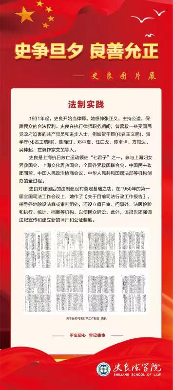 一部影片一段历史,一首红歌一面旗帜,一个故事一片初心。系列活动包括“追寻史良足迹”专题讲座、史良图片展览、红歌比赛、红色vlog征集大赛、“我的初心故事”征文比赛等。纪录片《史良》以时间为线索,详细讲述了史良先生立志、求学、奋斗的一生,通过观影,同学们对史良先生的杰出贡献有了更清晰的认识,不仅激发了大家的学习热情,也增强了家国天下的使命感。红歌是一种呼唤,呼唤着百年大党燃情岁月;红歌是一声号角,吹响了中华儿女的奋斗征程。唱响红歌,是追忆,更是祝福,通过红歌比赛,同学们深切感受到了中国共产党百折不挠与永不言弃的红色力量。一颗初心,一份情怀。新生积极参与“我的初心故事”征文比赛,用朴实的语言、诚挚的情感,讲述学法初心、阐述理想信念,切实将党史学习教育走深走实走心。