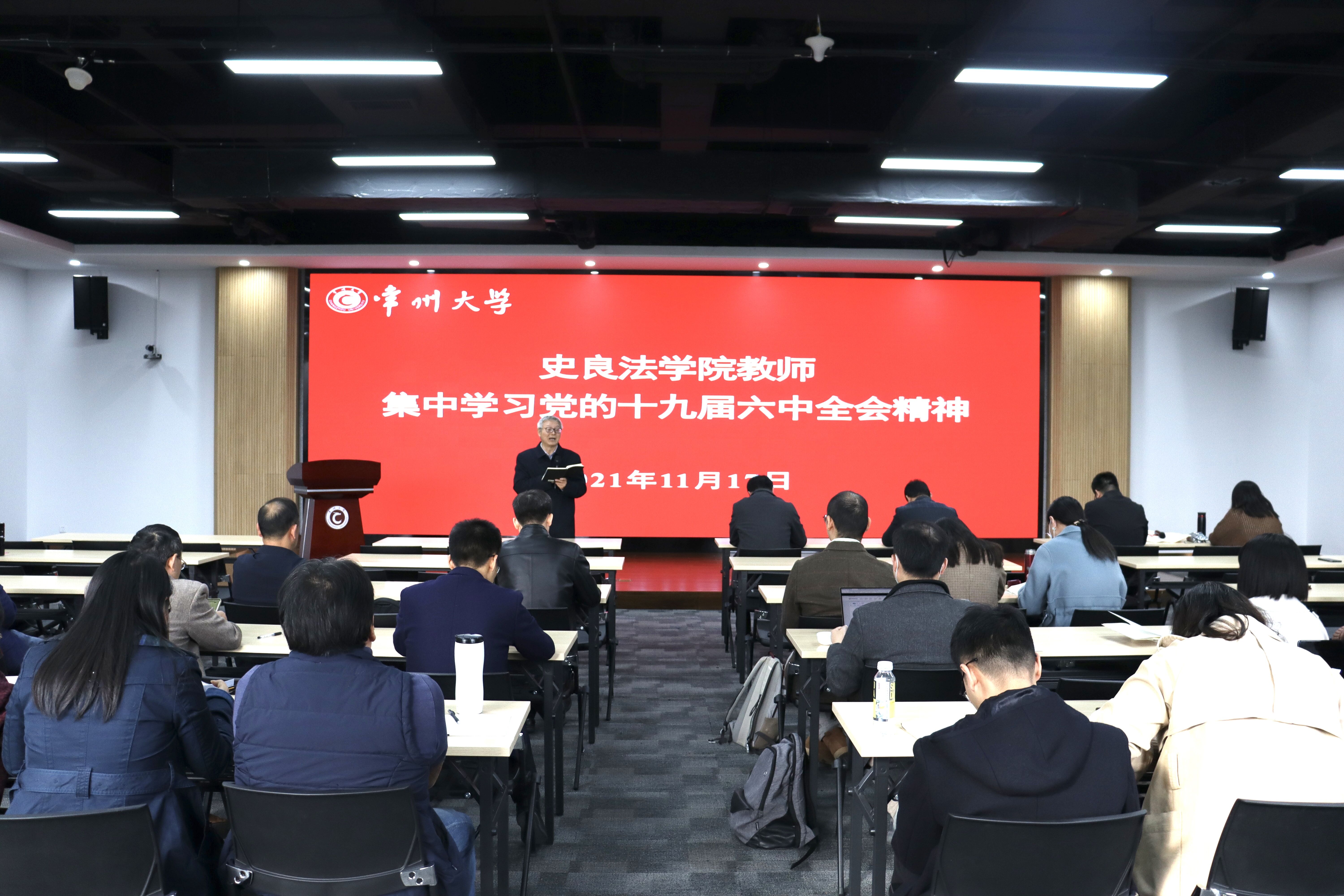为深入学习贯彻党的十九届六中全会精神,进一步推进党史学习教育,11月17日下午,我院在立言楼458会议室组织教师集中学习党的十九届六中全会精神,全体教职工成员参加会议。