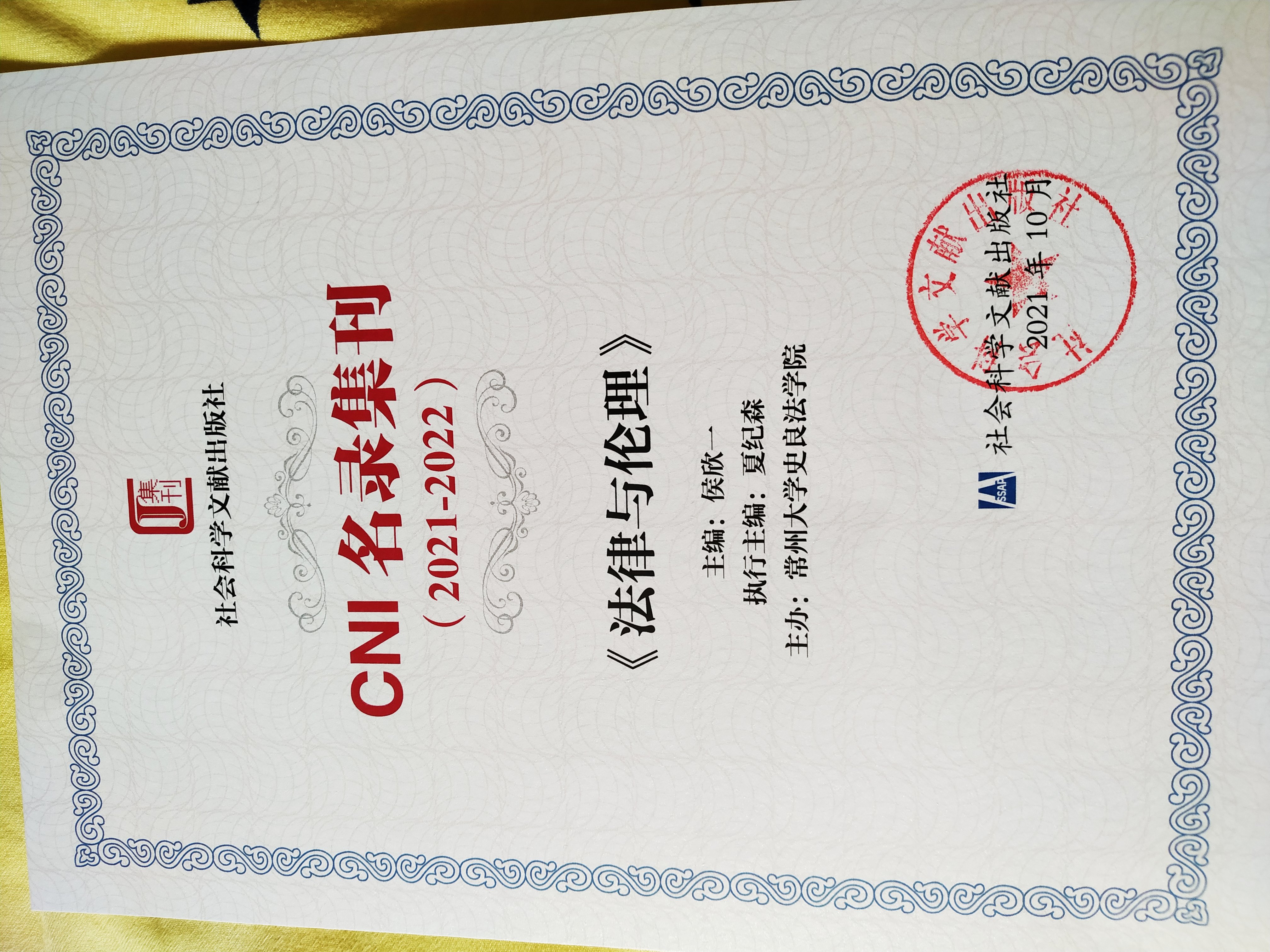 我院《法律与伦理》集刊出版近五年来,在获得社科文献出版社“2018年优秀集刊奖”、“2020年优秀集刊奖”,入选2019-2020年度CNI名录集刊后,今年又一次入选2021-2022年度CNI名录集刊!
