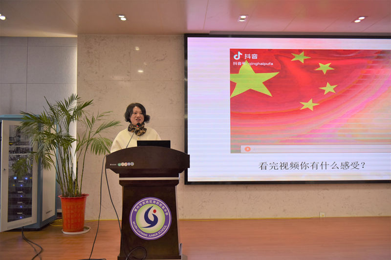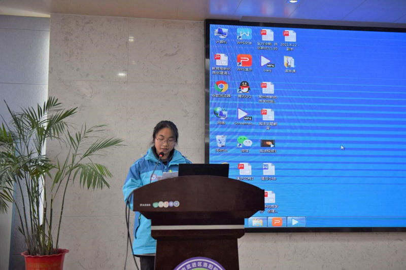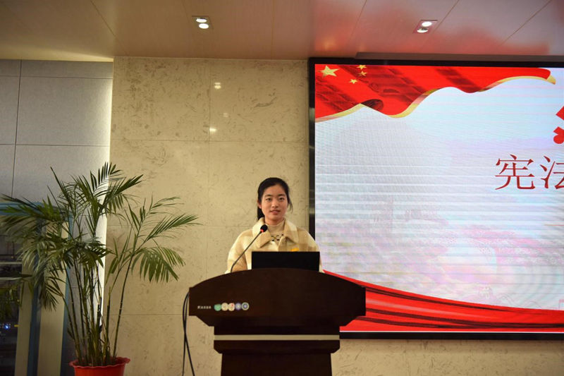 洛阳初级中学学生代表陈文慧进行宪法演讲。她呼吁同学们应自觉遵法守法,做新时代好少年,为推进新时代中国特色社会主义事业尽自己的一份力。