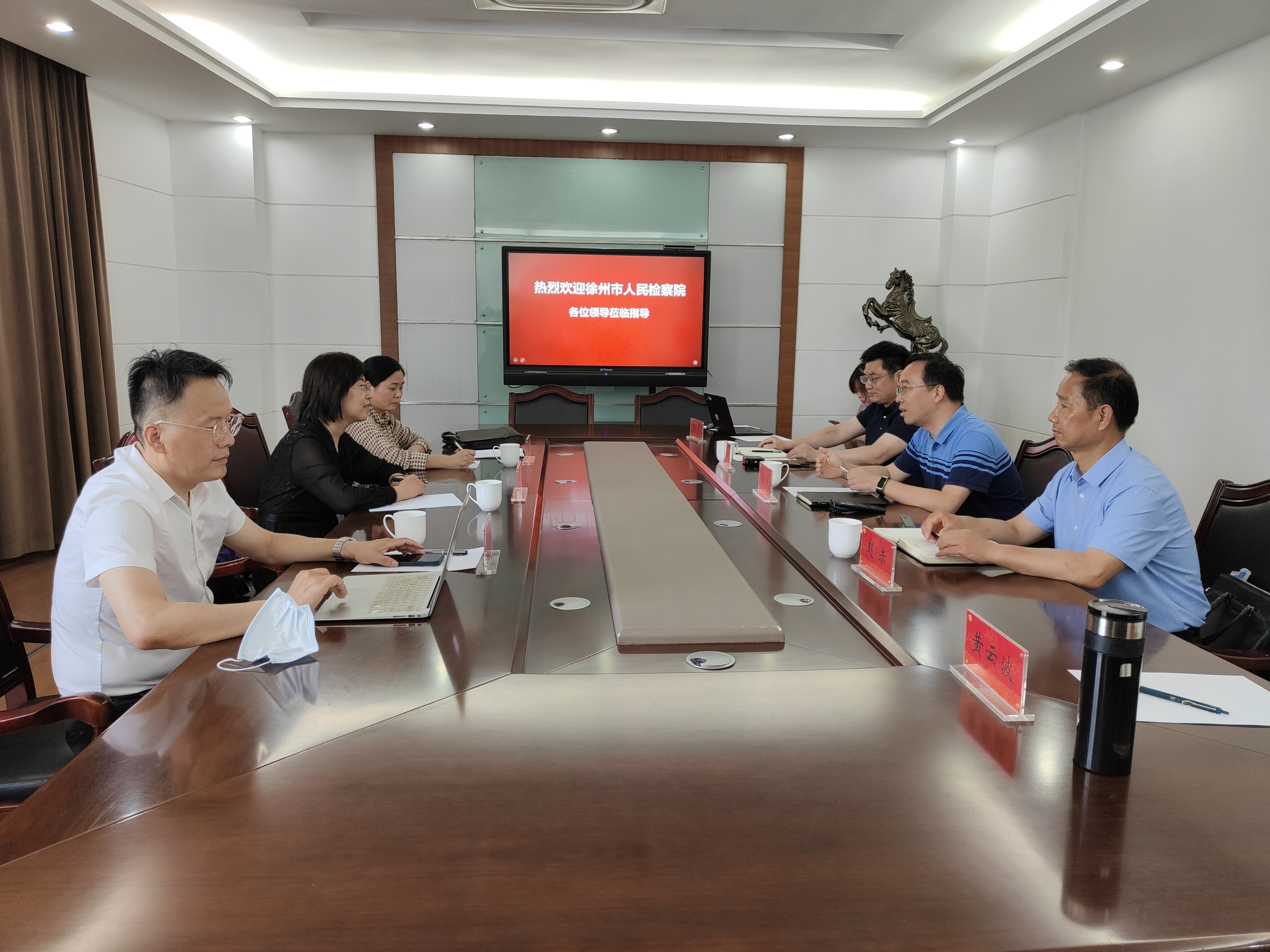 李炜主任一行三人则介绍了徐州市检察院的有关情况,徐州市检察院与江苏师范大学在企业合规、知识产权保护及未成年保护等方面的共建情况,在培养人才、案件合作等方面所取得的进展,希望在涉案企业合规等方面加强与史良法学院的交流合作。会议当天,李炜主任一行三人还与赵赤教授就涉案企业合规中的一些创新理念及难点问题进行了热烈的交流研讨,收获良多并达成合作的初步共识。(通讯员/唐亚岚 审核/秦义 编辑/闫冬 黄云波)