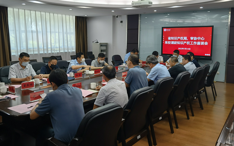 7月12日上午,江苏省知识产权局、国家知识产权局专利局专利审查协作江苏中心调研知识产权工作座谈会在我校武进校区文正楼第一会议室举行。