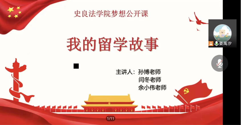 史良法学院是常州大学统一战线工作体系的有机组成部分,统战元素和统战思维已经全方位、多层次、立体化覆盖到史良法学院办学事业的各个方面。为扎实推进”携手喜迎二十大·同心共筑教育梦“主题宣传教育,8月14日上午,史良法学院于线上开展梦想公开课暨“我的留学故事”主题讲座。本次讲座邀请孙博、余小伟、闫冬三位博士主讲,21级全体本科生参与本次活动。