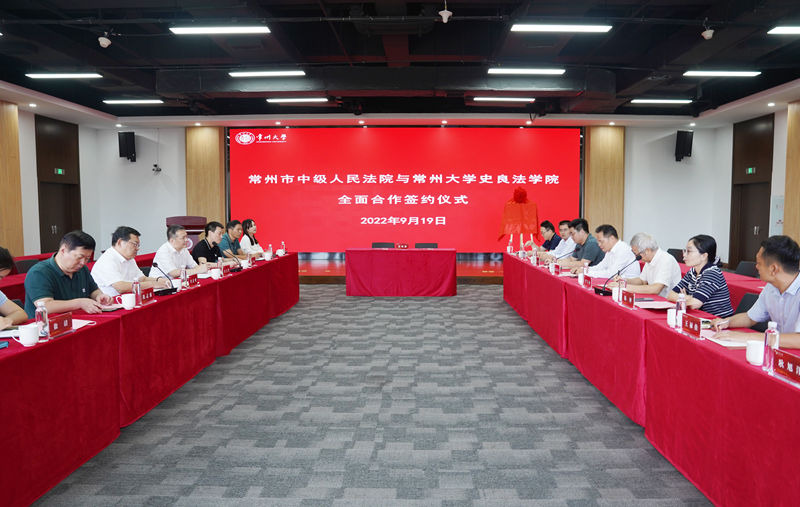 9月19日下午,常州中院与常州大学史良法学院在西太湖校区立言楼举行全面战略合作协议签约仪式。常州中院党组书记、院长曹忠明,党组成员、政治部主任张立群及相关部门负责同志,常州大学党委常委、纪委书记、派驻监察专员沈新奎,史良法学院名誉院长曹义孙,党委书记陈婷,院长张建等参加。