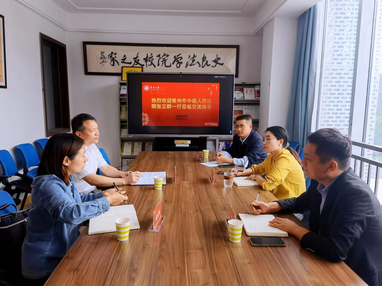 9月27日上午,常州中院党组成员、政治部主任张立群、组织人事处副处长张文雅一行来访史良法学院。学院党委书记陈婷、副书记王禄佳、副院长夏纪森等参加交流。