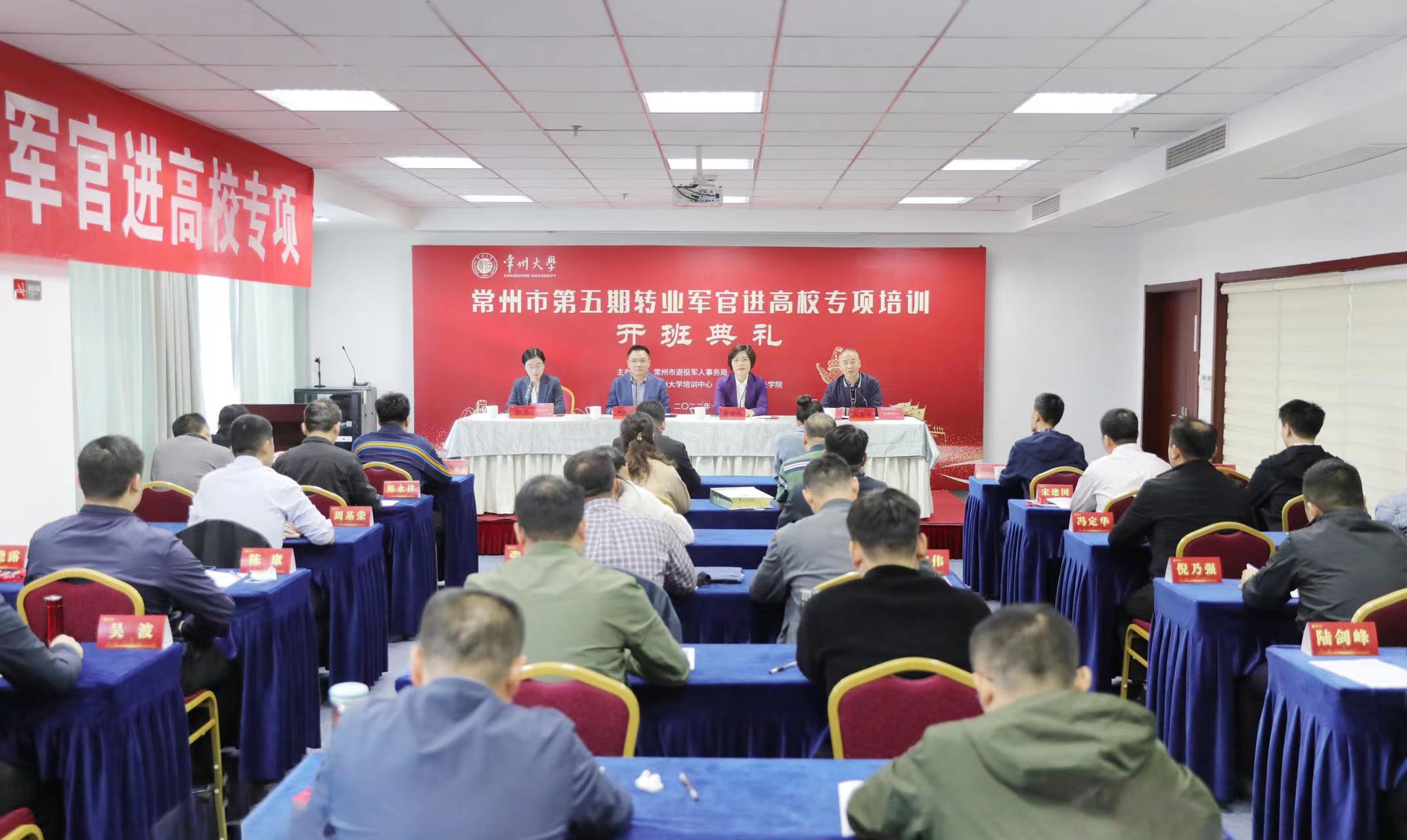 10月13日上午,2022年常州市第五期转业军官进高校专项培训开学典礼在我校举行。市退役军人事务局副局长尹志平、常州大学副校长黄海燕、常州大学史良法学院党委书记陈婷和来自常州市相关各委、办、局的34名学员参加典礼,开班典礼由常州大学继续教育学院院长、培训中心主任荆谷平主持。