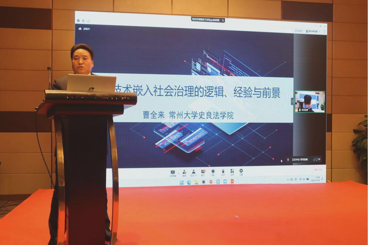 史良法学院教授曹全来教授作《数字技术嵌入社会治理的逻辑、经验及前景》主旨报告。他具体从数字技术嵌入社会治理的原理与逻辑,数字技术嵌入社会治理的难题挑战与经验法则以及数字时代社会治理的前景展望三部分展开,强调坚持人类社会共同价值观,以人为本统筹安全与发展,实现社会发展中不同位阶价值的协同性,确保技术发展应用与人类价值目标的统一性。