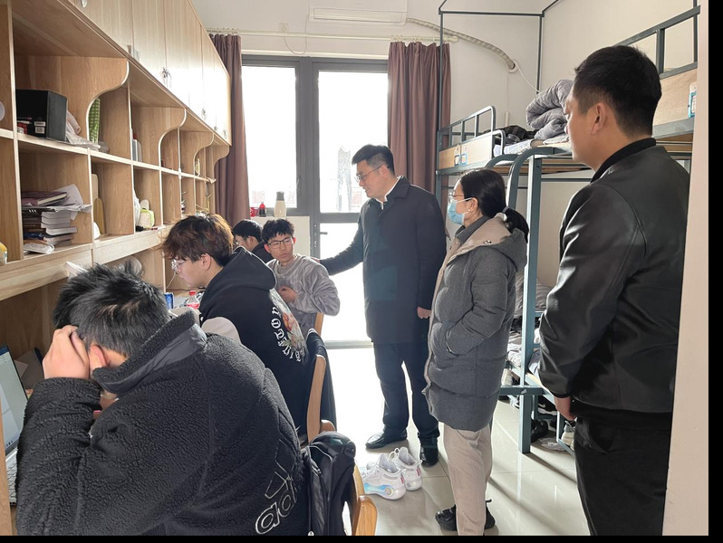 新年伊始,万象更新,为进一步做好学生教育,管理,服务工作,及时了解学生返校情况和身心健康,2月19日,学院党委书记陈婷、院长张建、党委副书记王禄佳及各年级辅导员老师,深入学生宿舍,走访慰问返校学生。