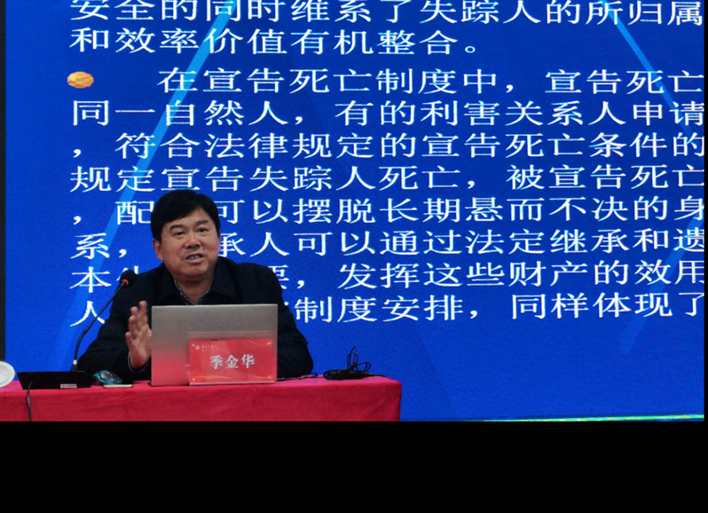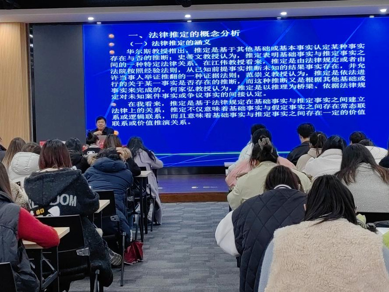 季金华教授通过列举学术界对法律推定概念的界定引出讲座主要观点,细致梳理法律推定概念在《民法典》各分编中的价值体现,结合具体实务的热点案例进一步逻辑论证,充分阐释法律推定的价值机理,深入剖析法律条文背后的法理。讲座以理论阐述为起点,展望智慧时代大背景下法律推定的发展方向。季教授强调,法科学生应时刻关注理论、学习理论、研究理论,在面对实务案例中不断提升自身的理论水平。