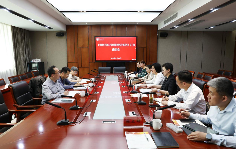 4月18日下午,《常州市科技创新促进条例》汇报座谈会在我校科教城校区文正楼第二会议室举行。科学技术部科技人才交流开发服务中心副主任陈宝明,常州大学党委常委、副校长黄海燕,常州市科技局副局长费晔出席座谈会,科技部科技人才交流开发服务中心、常州市科技局以及常州大学史良法学院立法起草小组相关人员参加会议。