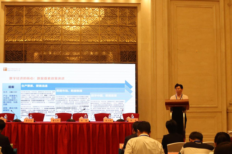 主旨演讲阶段,国家信息中心投资公司董事、总经理陈卫国先生以数据要素与数字资产为主题,谈及在数字经济快速发展态势下数据要素政策作为数字经济核心的演进过程,详细阐述数据要素流通市场中登记确权、评估计价、资产入表尚存的三大核心问题,对数字资产的定义、交易及热点话题作出解释。
