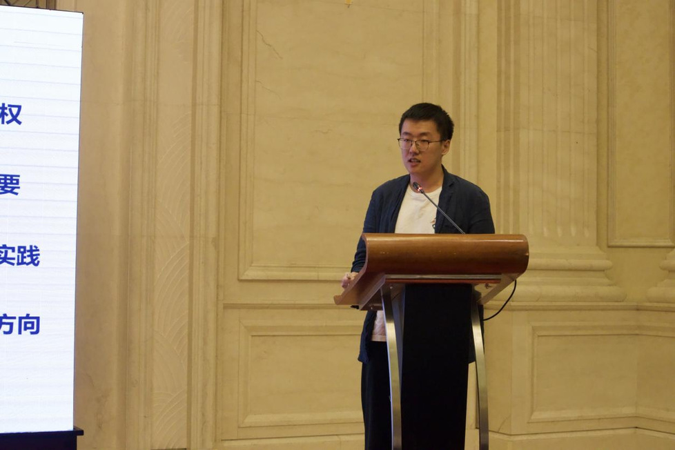 常州大学史良法学院周平奇博士以《代码是代码,法律是法律——数字化的法律和法律的数字化》进行主题演讲。他以自己目前正在翻译的外国文献为基础,对该文献的结构、论证特色和主要观点进行介绍,并分享了自己的译文收获以及对数字法学的看法。