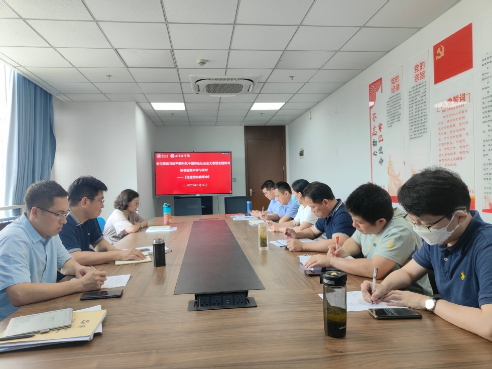 6月14日上午,史良法学院理论学习中心组在立言楼355会议室专题学习《论党的自我革命》、《习近平关于调查研究论述摘编》等内容。