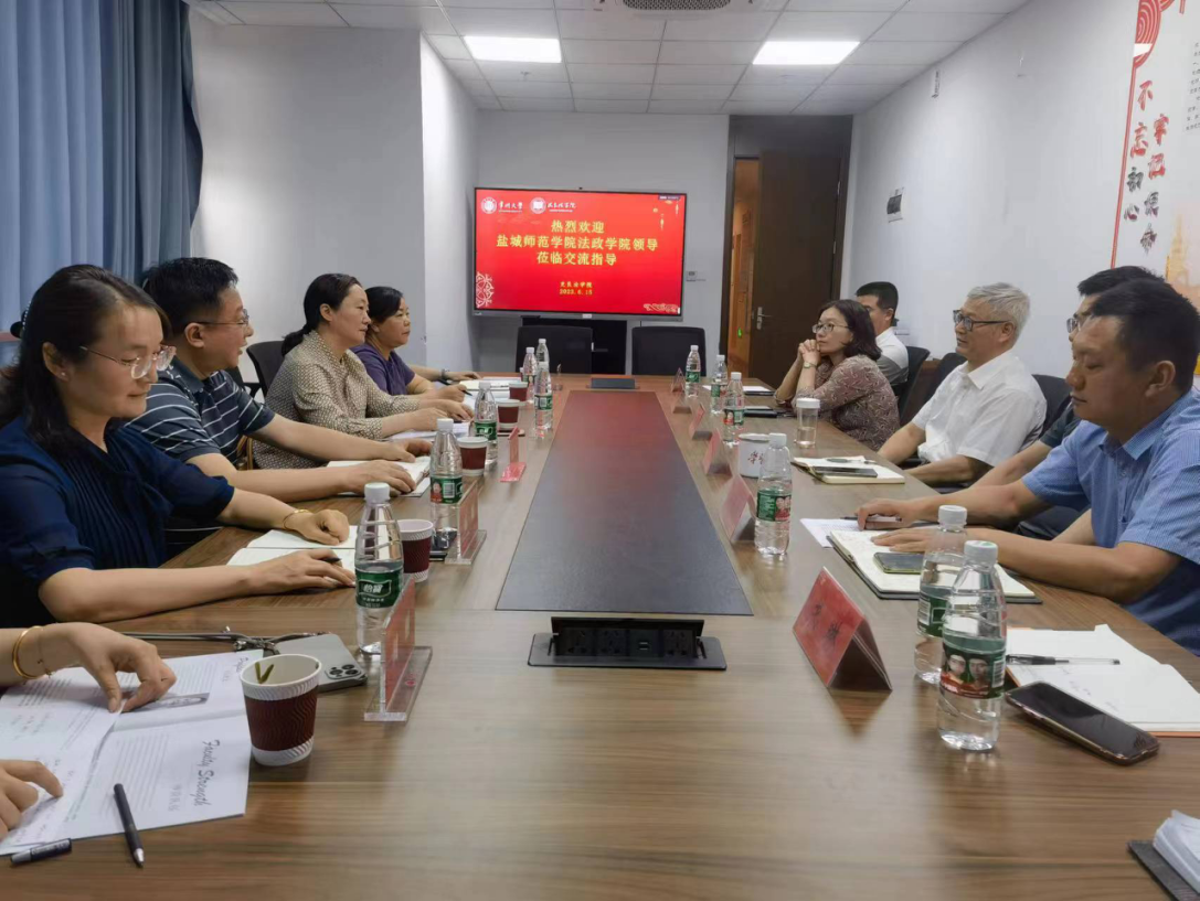 6月15日下午,盐城师范学院法政学院领导班子一行6人来我院调研交流,学院名誉院长曹义孙,党委书记陈婷,院长张建以及班子成员出席座谈会。