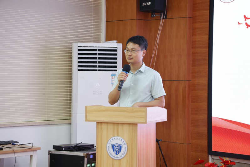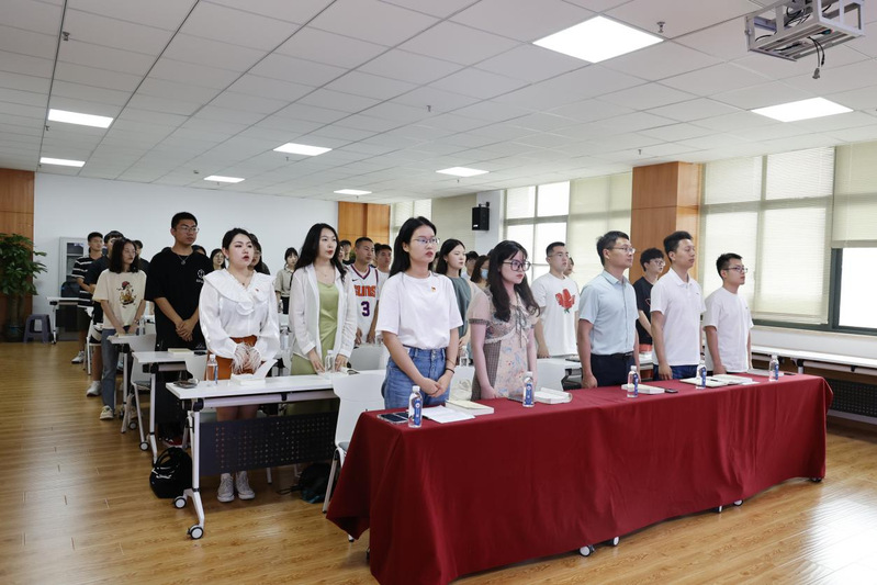 陈子威对两院共建表示欢迎,他指出将以党建工作为纽带,促进“党建共建”活动的深度合作,推进形成资源共享、优势互补、共同提高的党建工作新局面,携手共创先进党组织。随后,安全学院微课程研究生党员代表江艳晨作题为“人人讲安全,各个会应急”的安全生产月宣讲。他着重介绍了安全生产月的由来、2023年全国安全生产月的活动、安全生产主要职责及安全生产十不准。通过他的介绍,全面增强了学生们敬畏生命、敬畏职责、敬畏规章的责任意识。史良法学院微课程研究生党员代表徐轶喆分享《国家安全法》相关知识,以身边案例为切入口,宣传讲解维护国家安全的重要意义和法律常识。史良法学院财税法研究生周莹领学《习近平新时代中国特色社会主义思想专题摘编》第一章。周莹指出,党的二十大深刻阐述了习近平新时代中国特色社会主义思想的世界观和方法论,集中体现为“两个结合”和“六个坚持”。在新的征途上,要切实把解放思想与实事求是、培元固本与守正创新统一起来,不断谱写马克思主义中国化时代化新篇章。