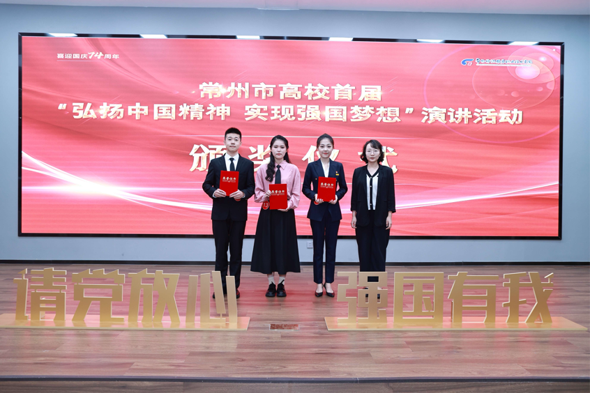近日,由中共常州市委宣传部、常州市高校马克思主义理论教育联盟主办的在常高校首届“弘扬中国精神 实现强国梦想”演讲活动在常州纺织服装职业技术学院举行。来自常州大学、江苏理工学院、常州工学院、南京航空航天大学天目湖校区、河海大学常州校区等13所在常高校参与活动。经过激烈角逐,我院研究生陈醉以总分第一名的优异成绩荣获一等奖。