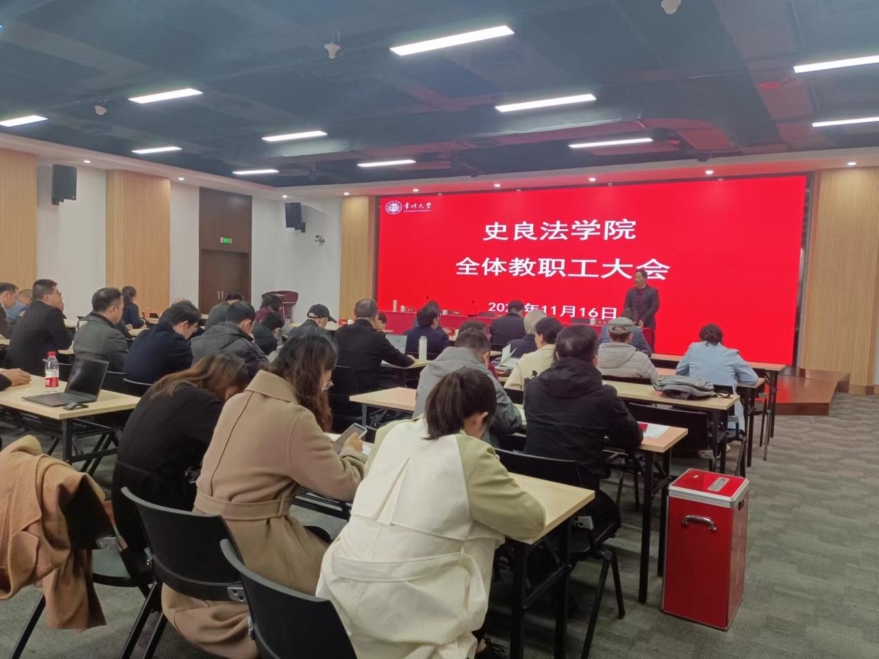 11月16日,常州大学史良法学院在立言楼458会议室召开了全体教职工大会,由学院党委书记陈婷主持。