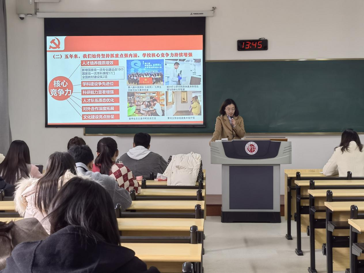 11月15日下午,史良法学院党委于立功楼333召开了“牢记嘱托、追忆校史、感恩奋进、走在前列”专题学习活动。本次活动由史良法学院党委书记陈婷主讲,她分别从感恩奋进成效显著的五年,切实扛起“走在前、做示范”的光荣使命,以高质量发展书写中国式现代化的时代答卷,持续推进新时代党的建设新的伟大工程四个方面讲述党代会精神,进一步引导党员学生认清形势、统一思想、坚定信心,切实把会议精神落实落细。