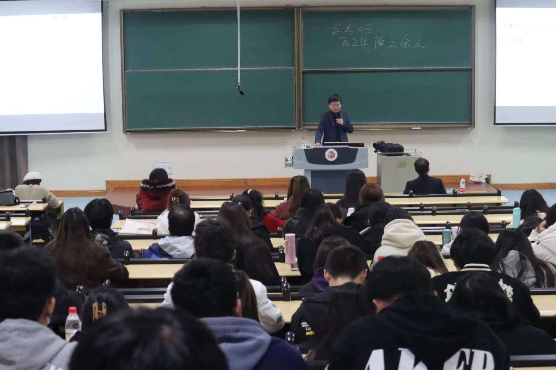 为帮助同学们加大对于《民法典》的学习热情和学术追求,深入理解民法学中黄金原则即处分原则,提升法科生的专业素养和学术能力,史良法学院于12月8日晚在立德楼一阶举办史良法学院大讲堂—— “处分原则的形式与实质”的主题讲座。本次讲座由南京大学法学院教授、博士生导师严仁群主讲,常州大学史良法学院廖浩副教授主持,郝泽愚博士、张浩良博士和2021级全体法学本科生参与聆听。