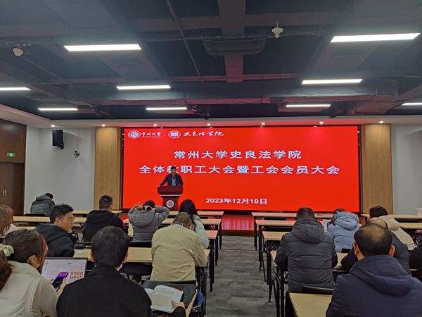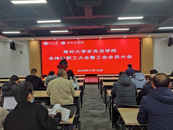 2023年12月18日下午2点在西太湖校区立言楼458多功能室,史良法学院召开学院教职工代表大会暨分工会会员大会。学院党政领导班子及全体教职工参加会议,会议由学院党委副书记王禄佳主持。