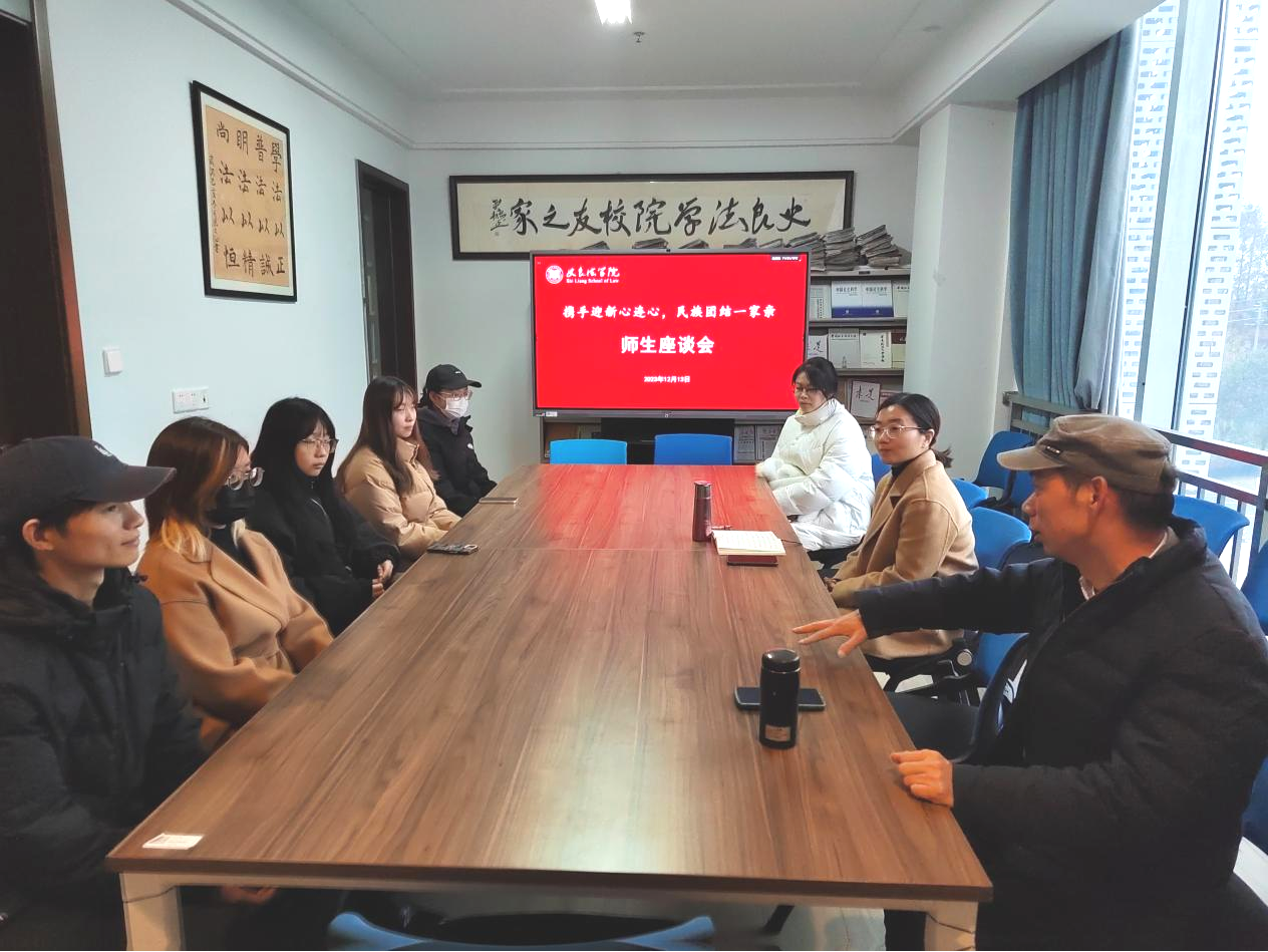 为进一步引导我院师生铸牢中华民族共同体意识,加强与各族师生的沟通与交流,全面了解各族师生的学习、工作与生活情况,12月13日,史良法学院特举办“携手迎新心连心,民族团结一家亲”师生座谈会。本次会议由院党委书记陈婷主持,徐新意教授和各族师生参会。