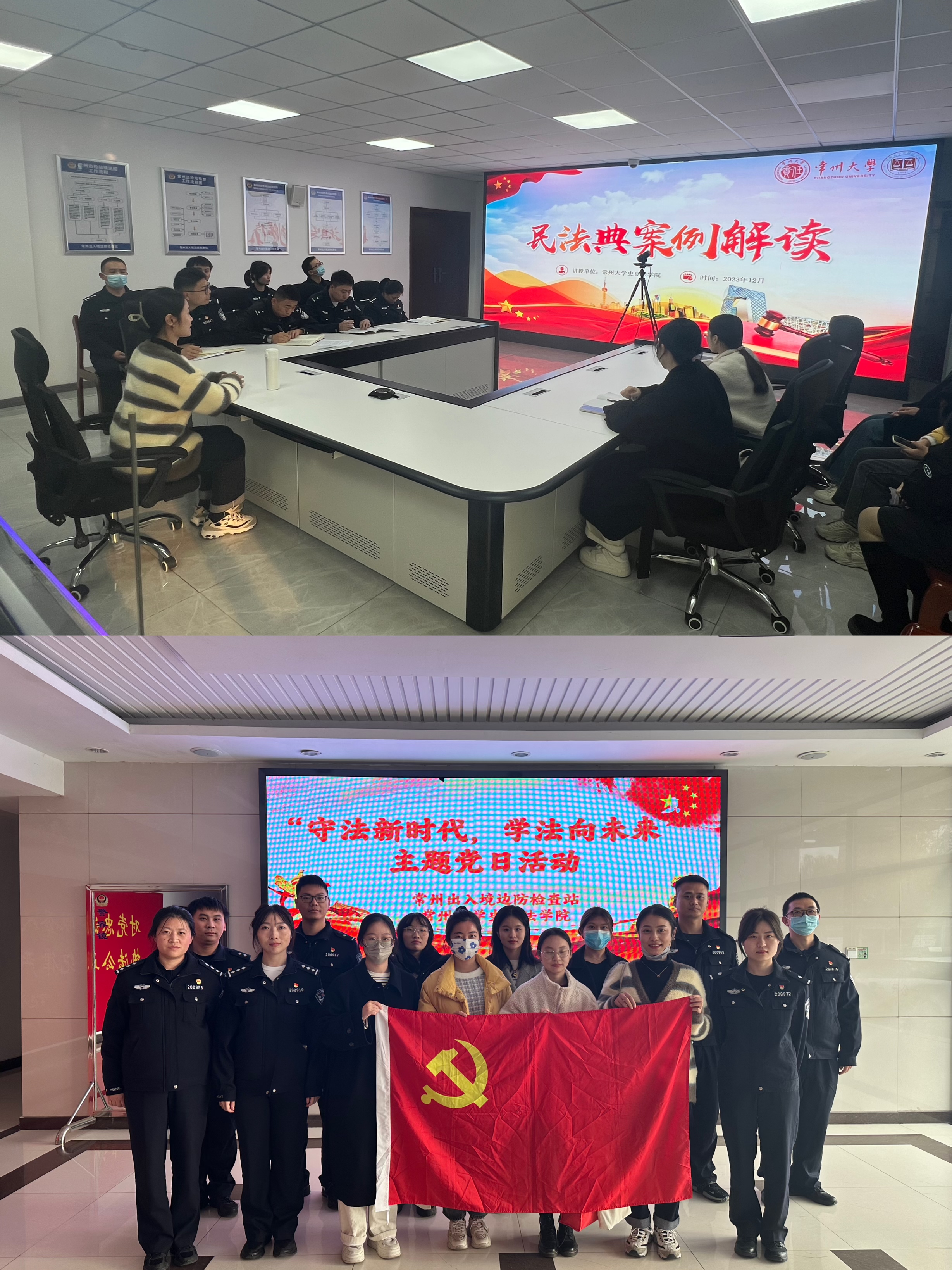 11月19日,史良法学院本科生和研究生党支部与新北区边检站举行法治共建活动。研究生党员黄雪颖为大家带来了一场精彩的法治微课堂。她以民法典为主题,以一个公民从出生开始如何维护自己的权利为视角,深入浅出地讲解法治知识。同学们在边检站工作人员的带领下参观边检站普法长廊,并亲眼目睹了边检站工作人员严谨的工作态度和高效的工作效率,对祖国边境安全事业有了更加直观的认识。
