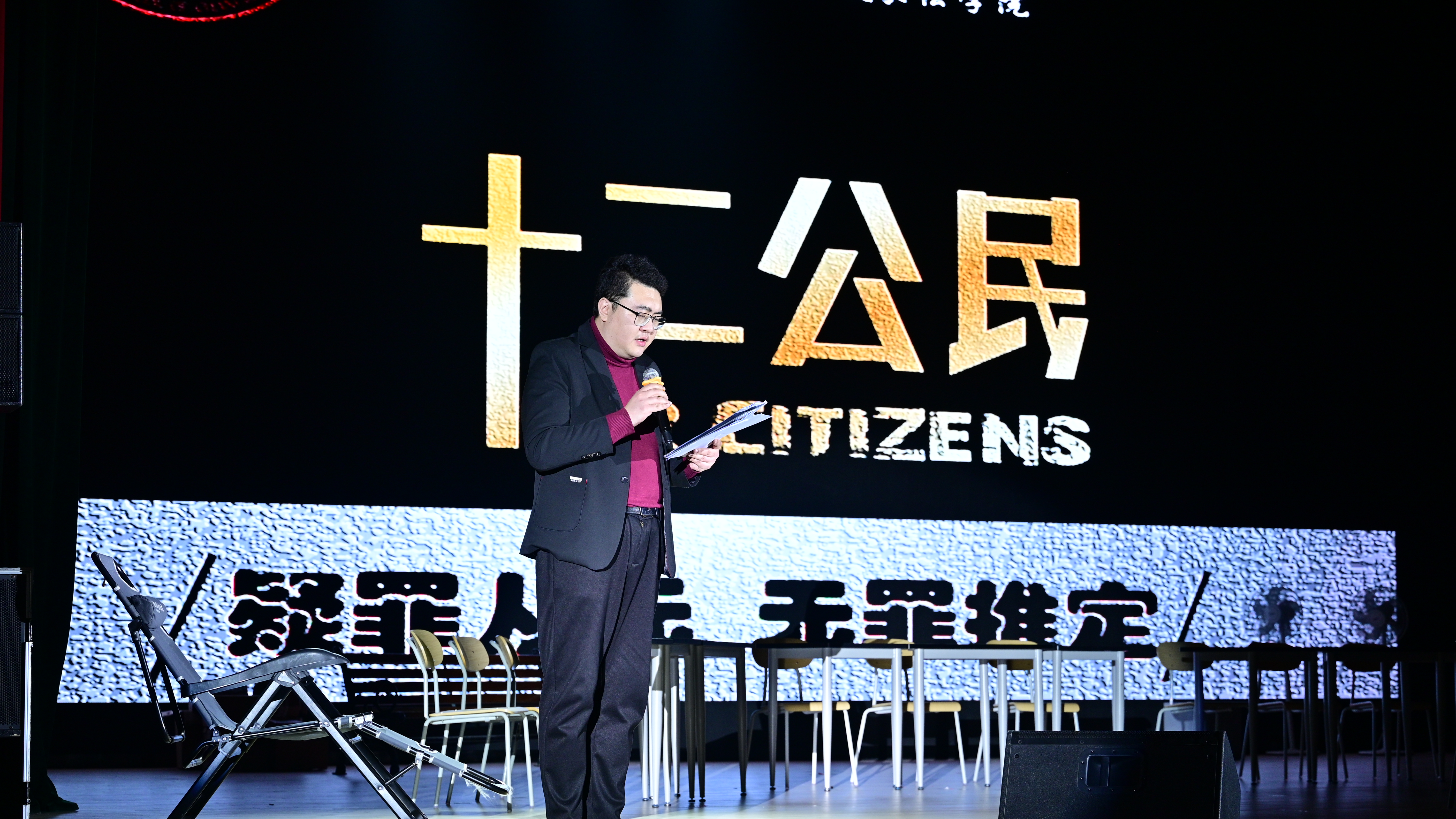12月4日晚,我院师生改编的话剧《十二公民》在常州大学西太湖立艺楼大礼堂首演。该话剧改编自经典法律题材戏剧作品,借助不同背景、职业、阶层的社会人物之口揭示案件的疑点与矛盾,在民主、理性和公正的辩论中,公民们逐步化解了尖锐的分歧矛盾达成一致的无罪判决。强烈的戏剧冲突激发了现场同学对民主决策及社会责任的深层理解。