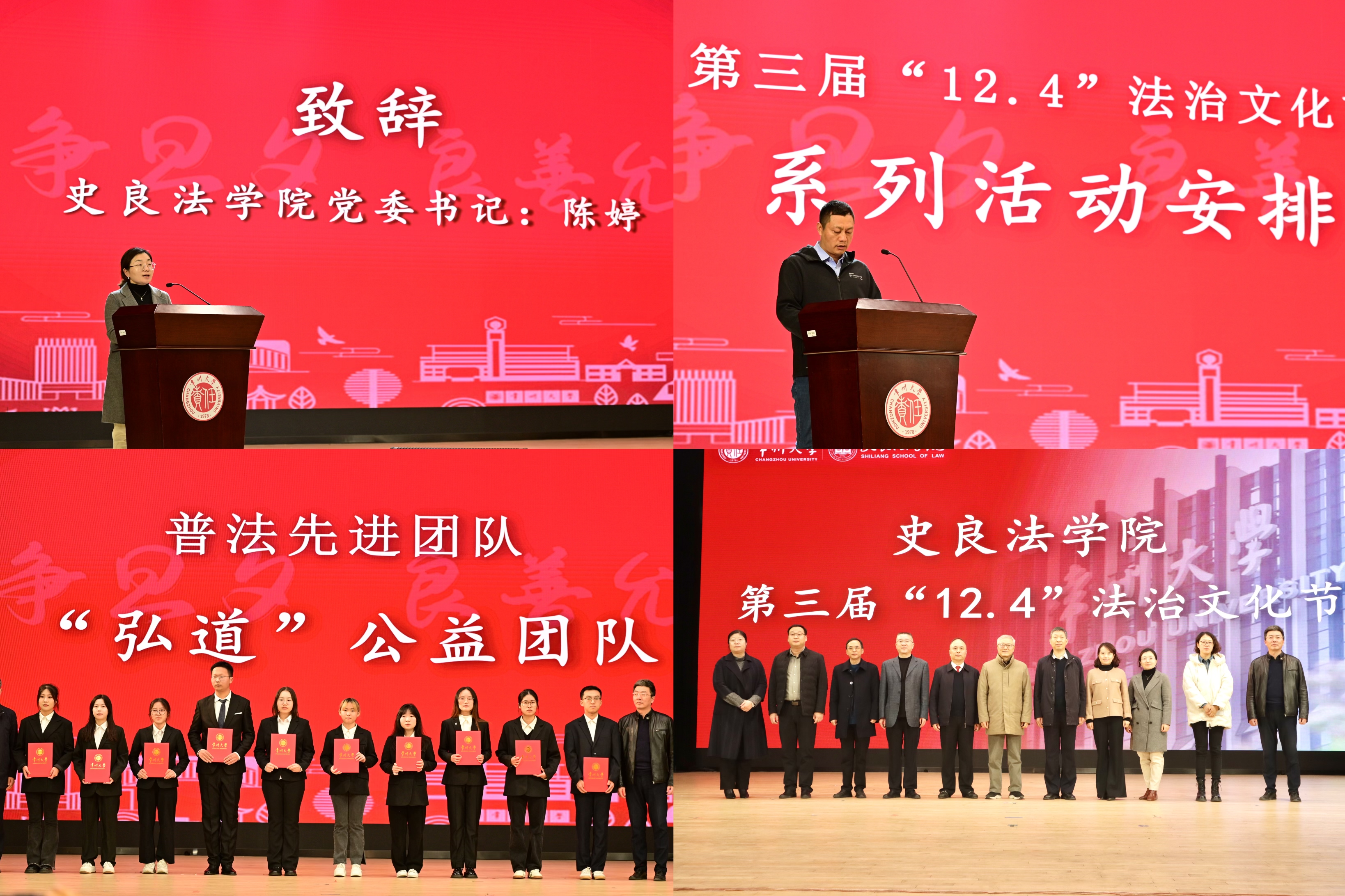 12月4日,常州大学史良法学院第三届法治文化节开幕式在西太湖校区立艺楼大礼堂成功举办。武进区副区长、武进公安分局党委书记、局长盛世麟,武进区人民法院党组书记、院长宋文良,武进区人民检察院党组书记、检察长张娟,武进公安分局党委委员、副局长苏建中,武进区司法局副局长沈隽,学校各相关职能部门、史良法学院负责人及师生代表近千人出席活动。开幕式上为大家带来了精彩的法治节目,并结合法学专业特色安排了形式多样、内容丰富的活动,这是深入学习贯彻习近平法治思想的生动实践,是推动“八五”普法走深走实的具体行动,也是推进我校法治建设、加强师生法律意识的重要举措。