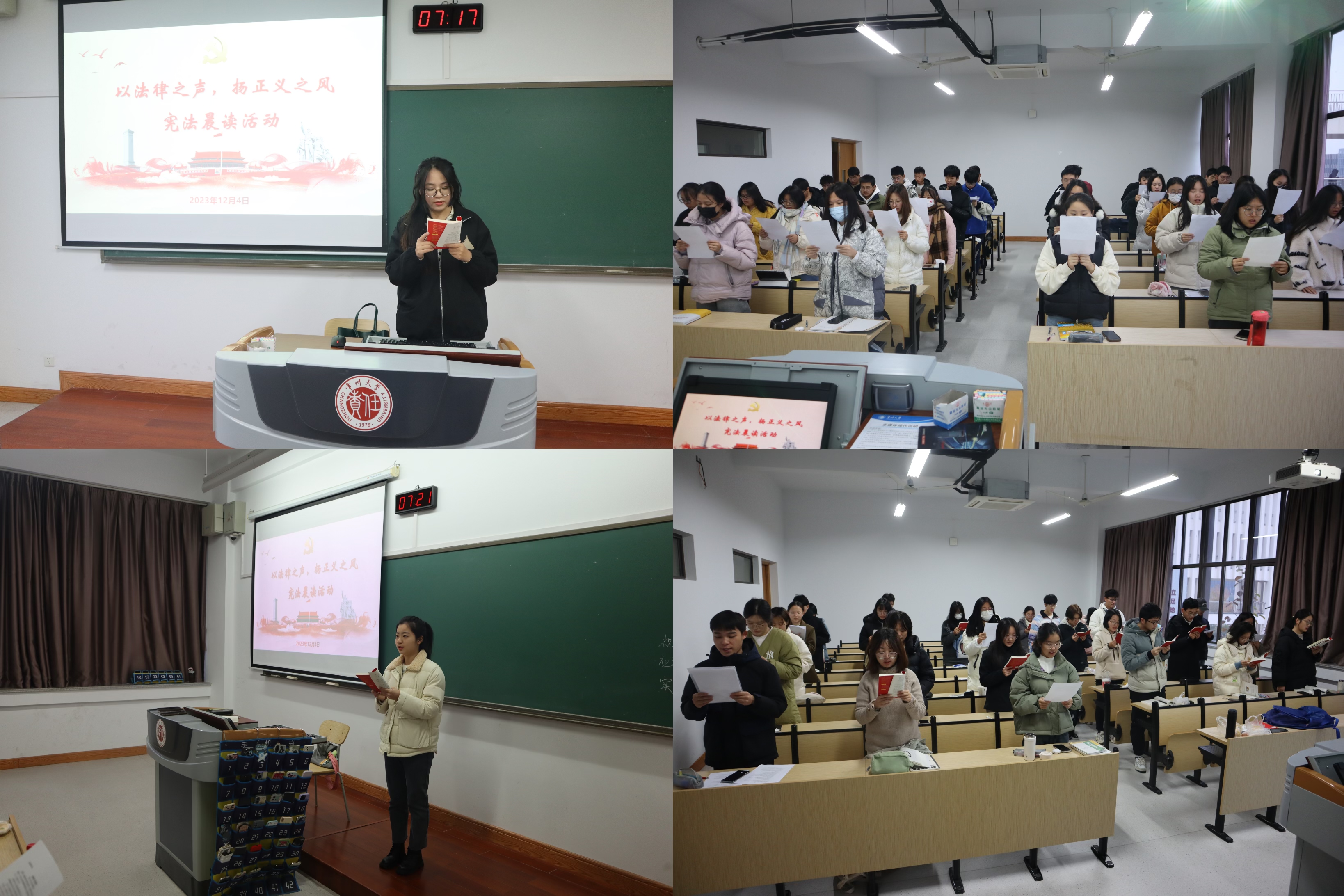 12月4日上午早自习时间,史良法学院学生党员走进我校部分新生班级自习室,开展宪法晨读活动。以法律之声,扬正义之风。通过朗读宪法的方式宣传推广宪法知识,倡导所有学生学法、懂法、知法、用法,进而弘扬宪法精神,传递法律正能量。