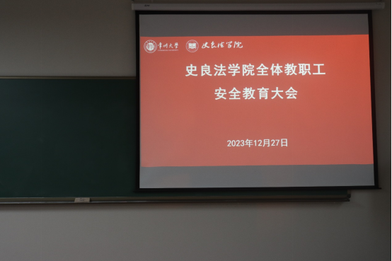 为提高全体教职工的安全意识,12月27日下午,史良法学院在立言楼342召开安全教育大会,西太湖校区管委会副主任李长荣为全体教职工进行了安全培训。