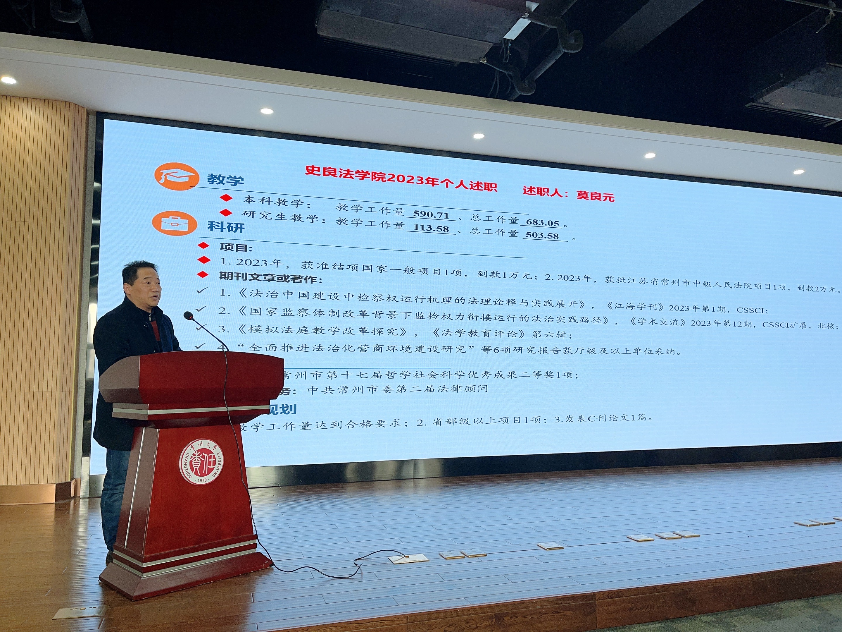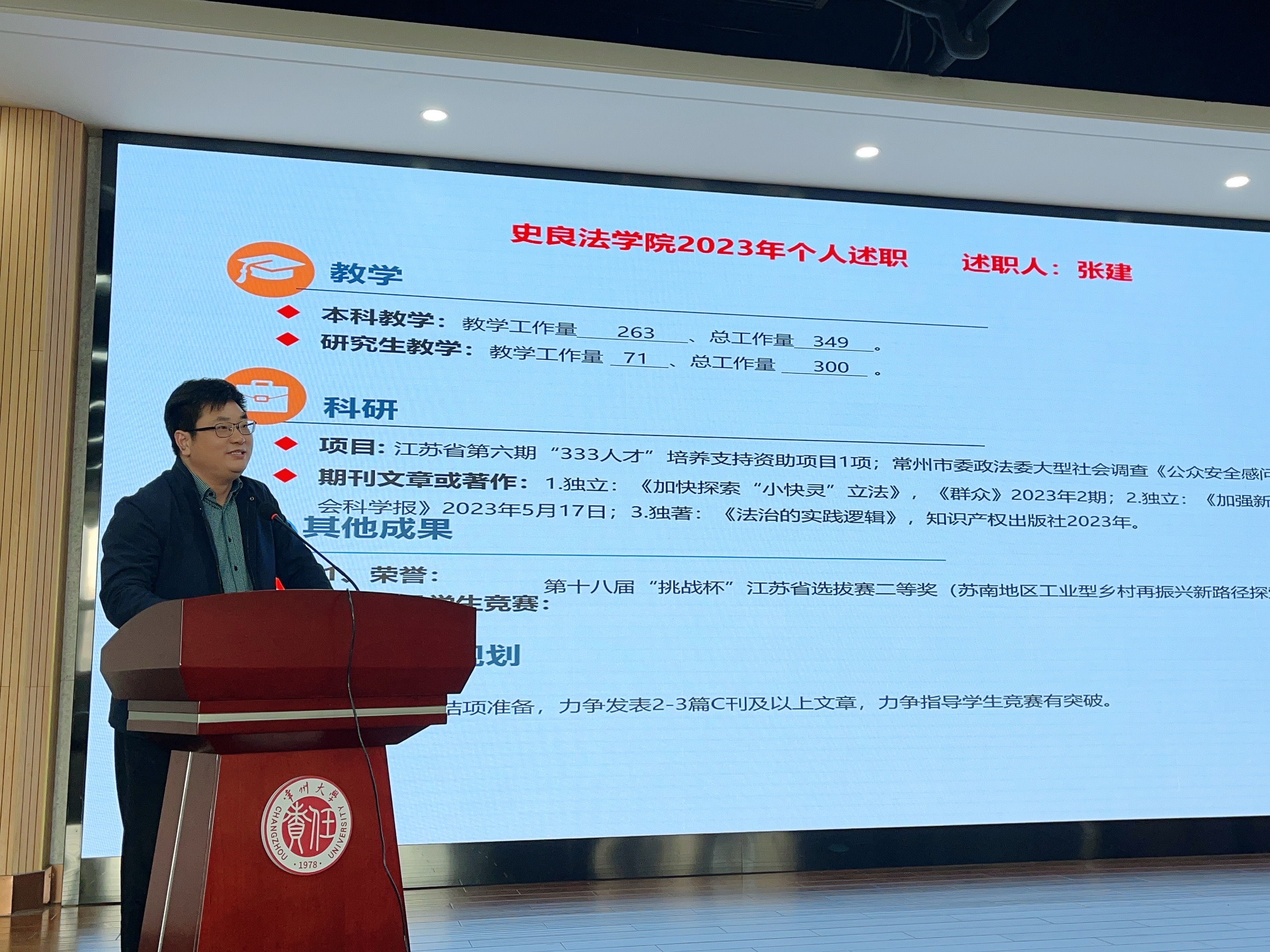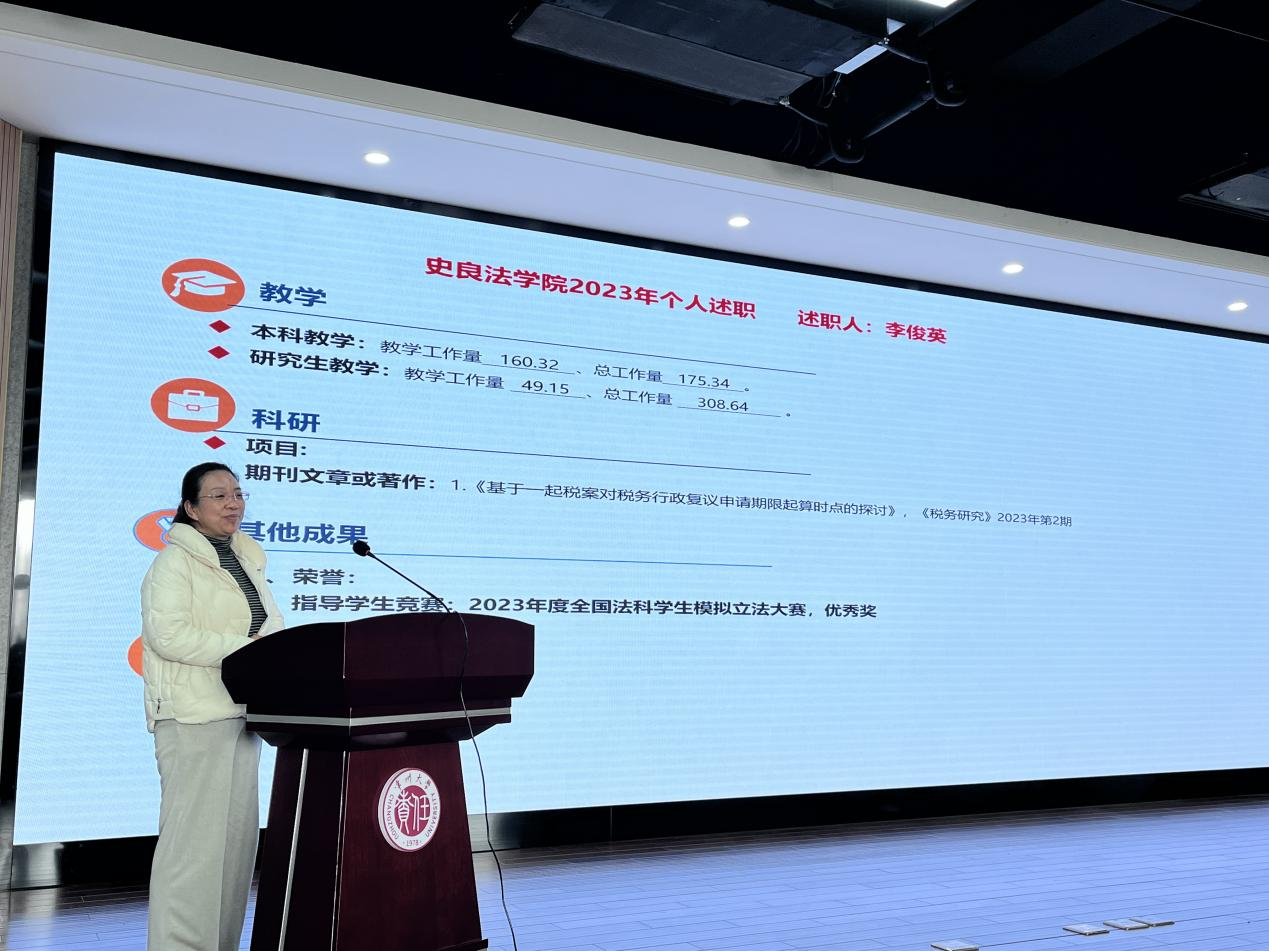 为总结过去一年史良法学院全体教职工的工作情况,促进相互之间的了解和交流,2024年1月13日,我院在立言楼458会议室召开2023年度教职工述职大会,会议由院长张建主持。