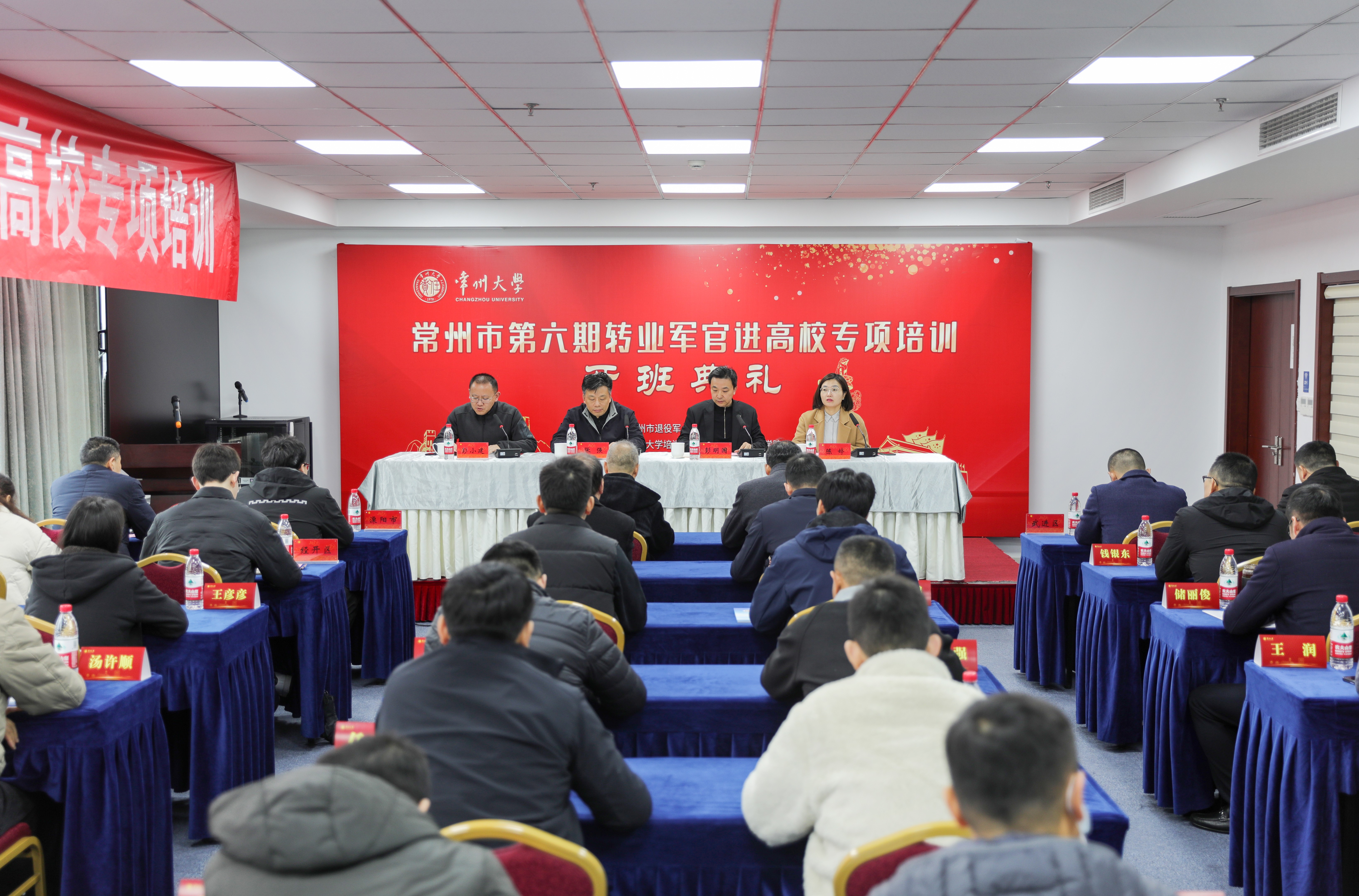 3月14日上午,常州市第六期转业军官进高校专项培训在常州大学科教城校区开班,市退役军人事务局副局长张强,常州大学副校长彭明国、继续教育学院院长荆谷平、继续教育学院副院长彭小建、史良法学院党委书记陈婷出席开班典礼。