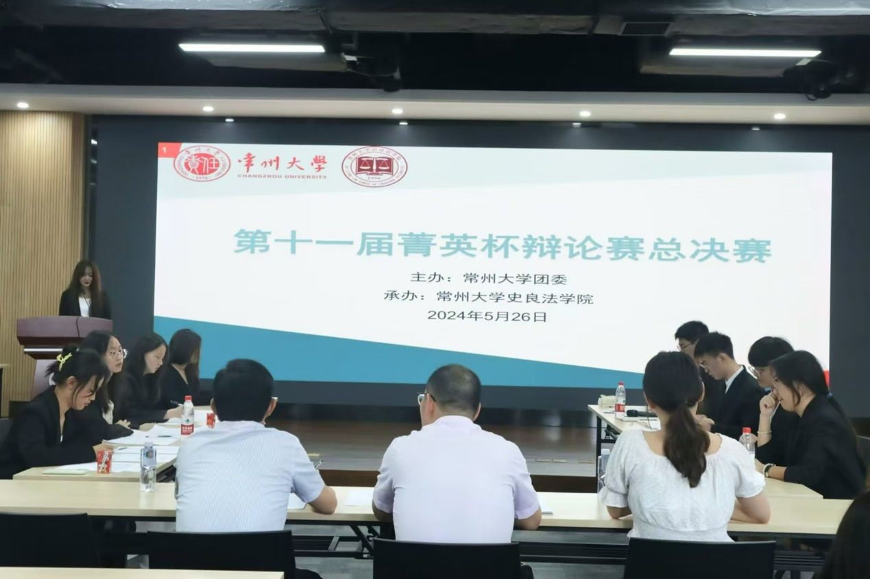 5月26日下午,由常州大学校团委主办,史良法学院承办的常州大学第十一届“菁英杯”辩论赛总决赛于立言楼458会议室举行。经过紧张激烈的初赛、复赛以及半决赛,各学院辩手在辩论赛的舞台上纷纷展现了自己的风采。其中,史良法学院,城市建设学院辩论队稳扎稳打,一路打进总决赛。本次决赛特邀常州市律协文宣委主任张镓麒、江苏阳湖律师事务所党支部书记钱凯以及常州市天宁区人民法院兰陵人民法庭法官吴菲担任评委。